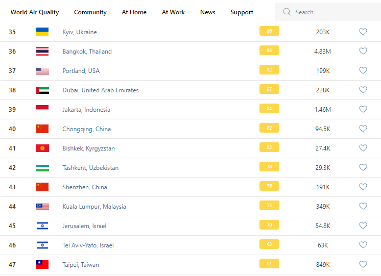 В рейтинге крупнейших городов мира по качеству воздуха World Air Quality Бишкек опустился на 41-е место.