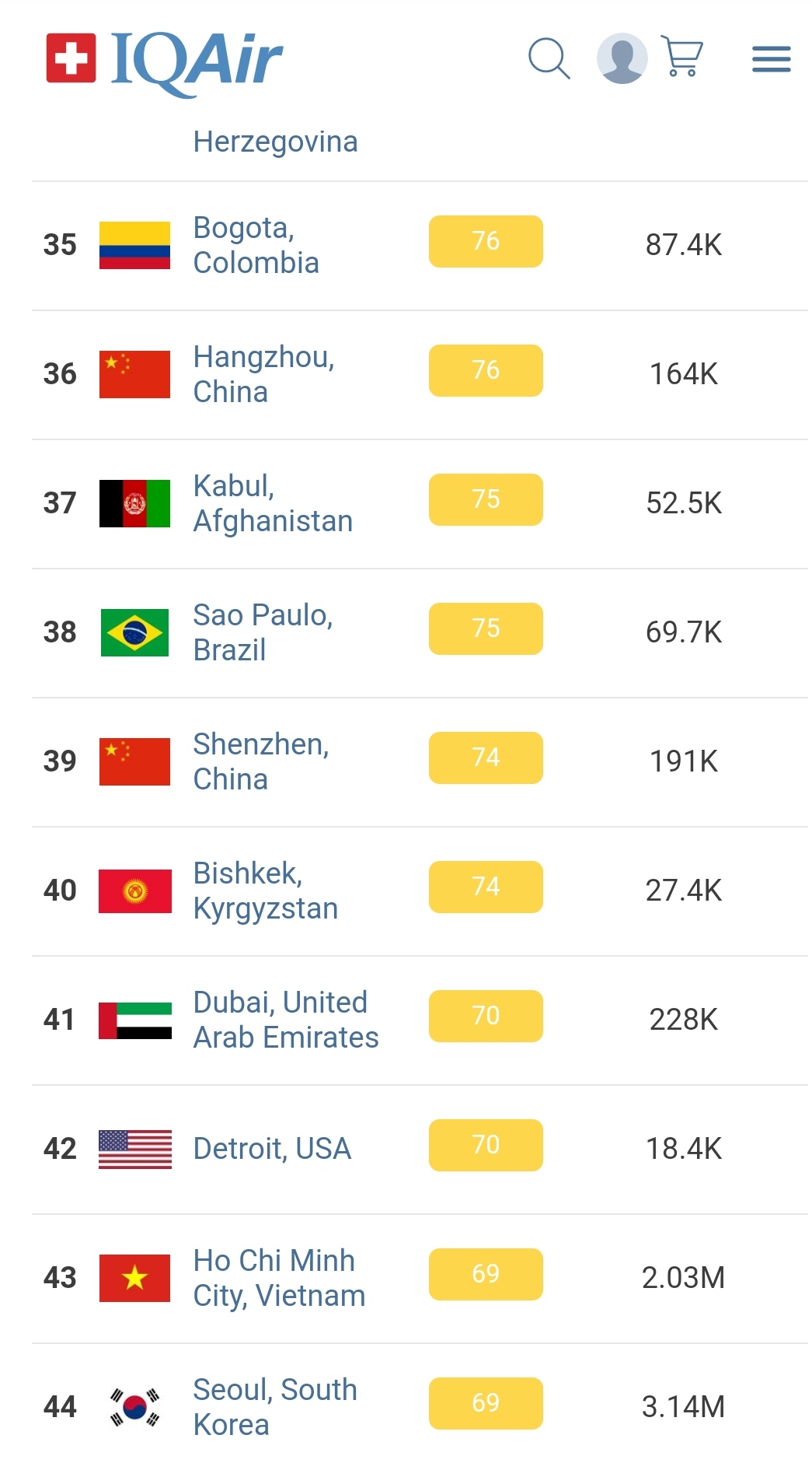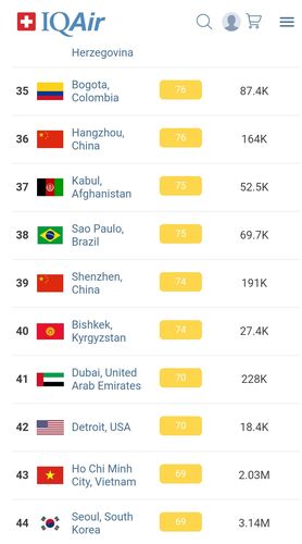 В 19.30 статус города отмечен как «умеренный». Индекс качества воздуха, по данным сайта, составляет 74 (AQI).