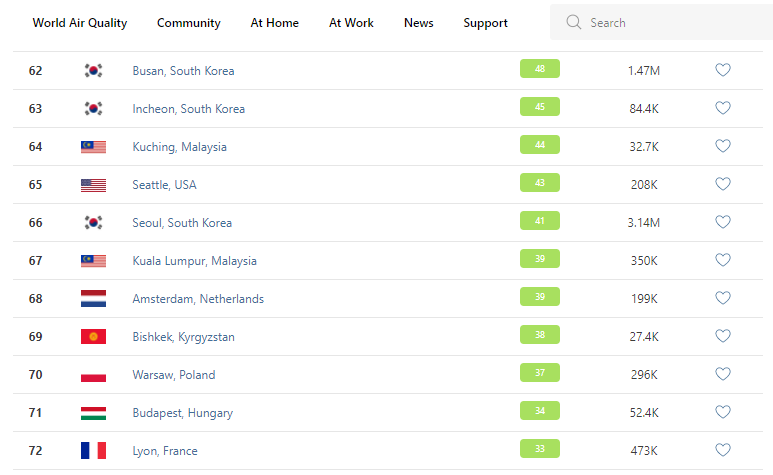 В рейтинге крупнейших городов мира по качеству воздуха World Air Quality Бишкек опустился на 69-е место.