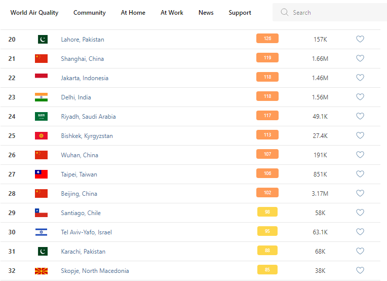 В рейтинге крупнейших городов мира по качеству воздуха World Air Quality Бишкек поднялся на 25-е место.