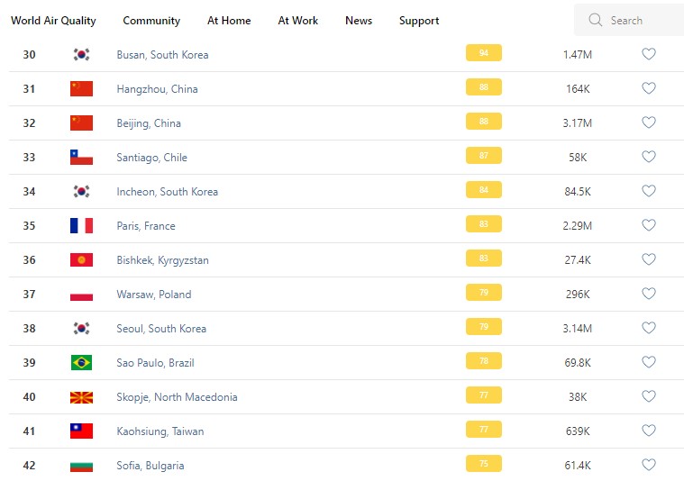 В рейтинге крупнейших городов мира по качеству воздуха World Air Quality Бишкек опустился на 36-е место.