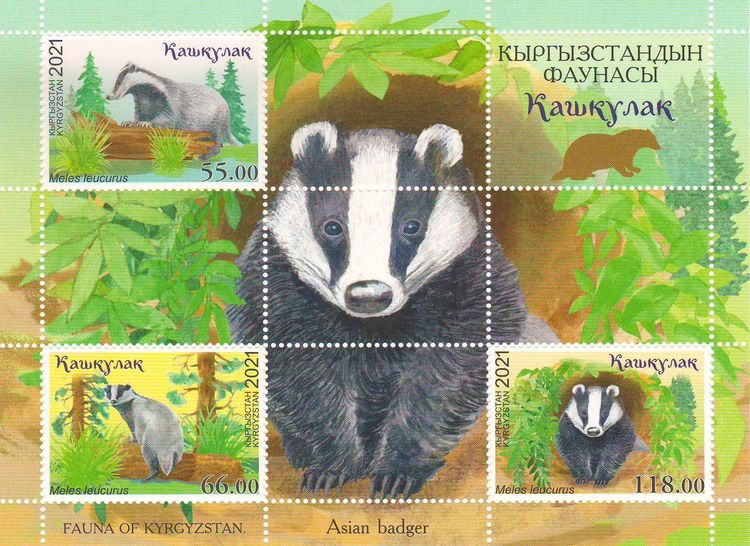 Фото Госслужбы цифрового развития КР. Почтовые марки «Фауна Кыргызстана. Азиатский барсук»