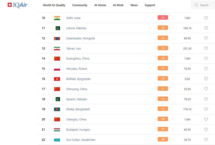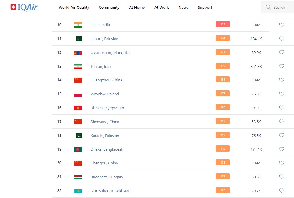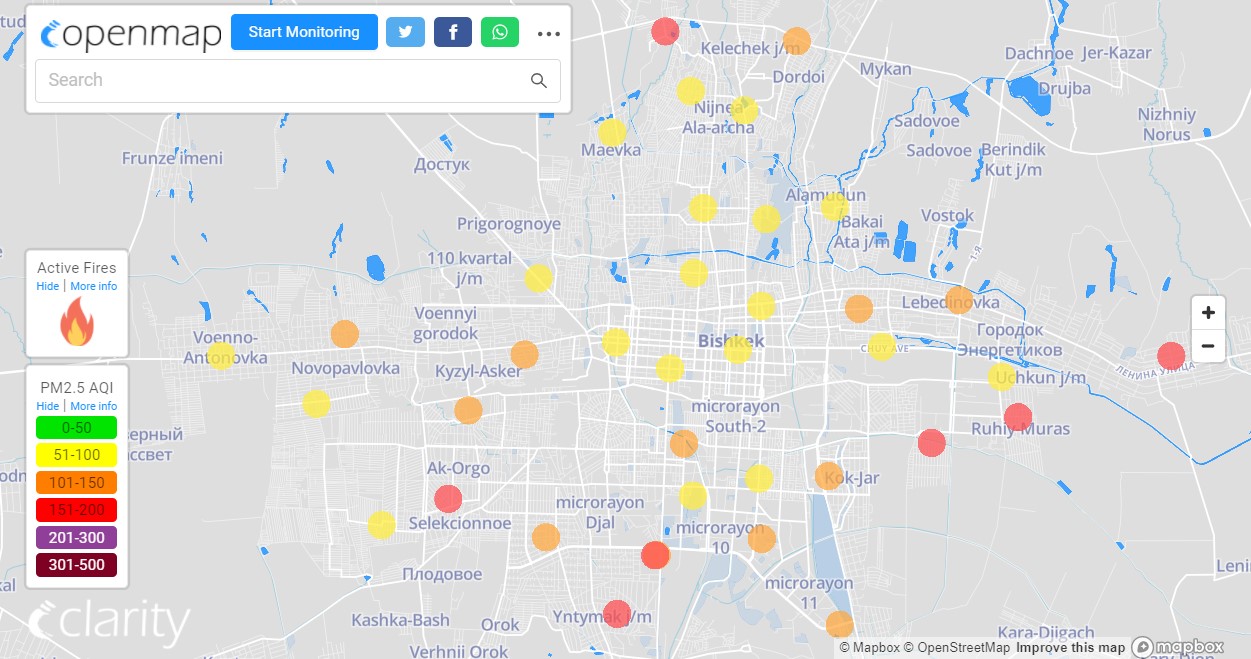 В рейтинге крупнейших городов мира по качеству воздуха World Air Quality Бишкек опустился на 16-е место.
