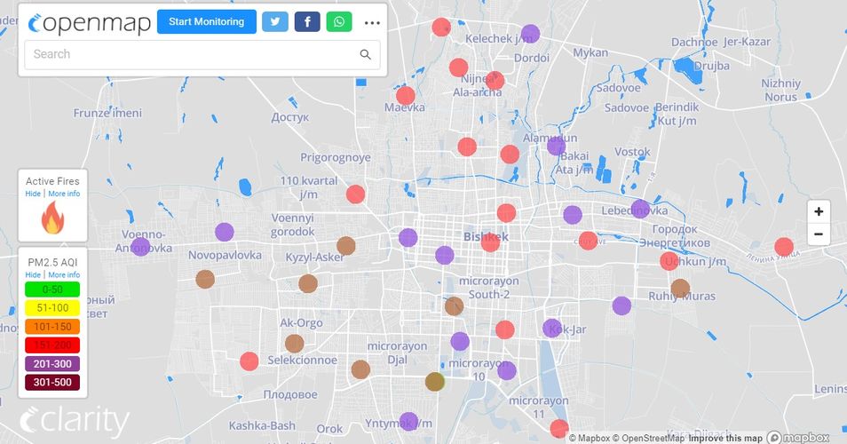 В рейтинге крупнейших городов мира по качеству воздуха World Air Quality Бишкек поднялся на первое место.