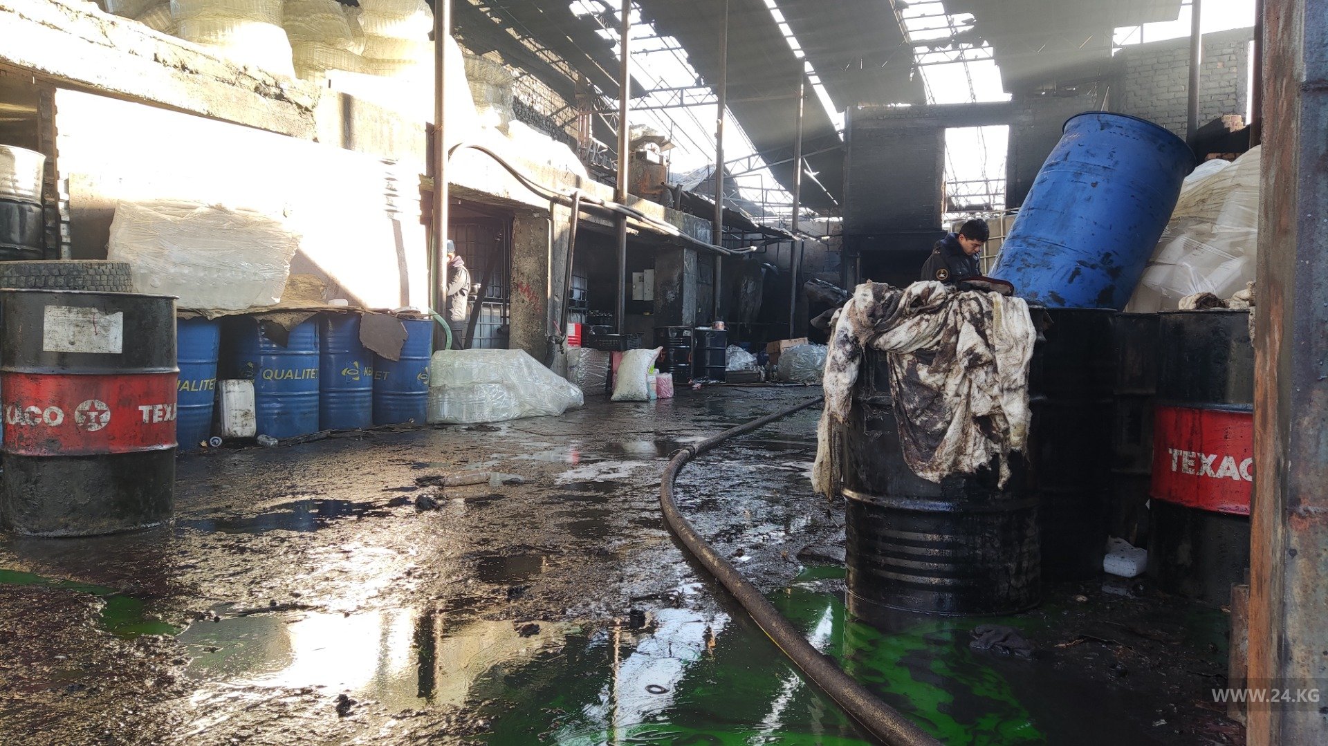 В Бишкеке в цехе на улице Тимирязева, 133, где кустарным способом производили ГСМ, второй раз вспыхнул крупный пожар.