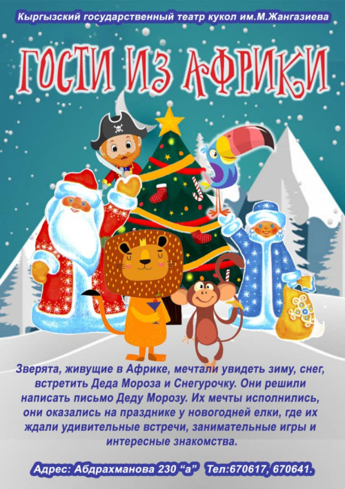 Кроме того, Театр кукол представляет спектакль «Кар балдар» на кыргызском языке. Это новогодняя шоу-программа с участием героев из мультфильма «Эверест».