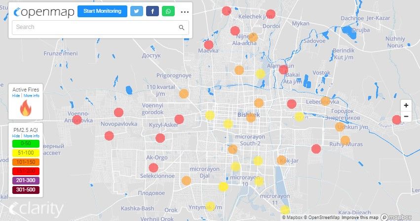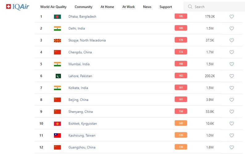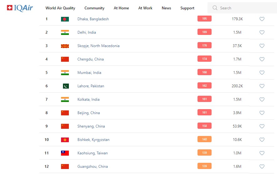 В рейтинге крупнейших городов мира по качеству воздуха World Air Quality Бишкек поднялся на 10-е место.