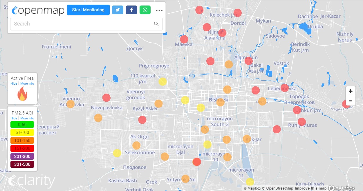 В рейтинге крупнейших городов мира по качеству воздуха World Air Quality Бишкек опустился на 15-е место.