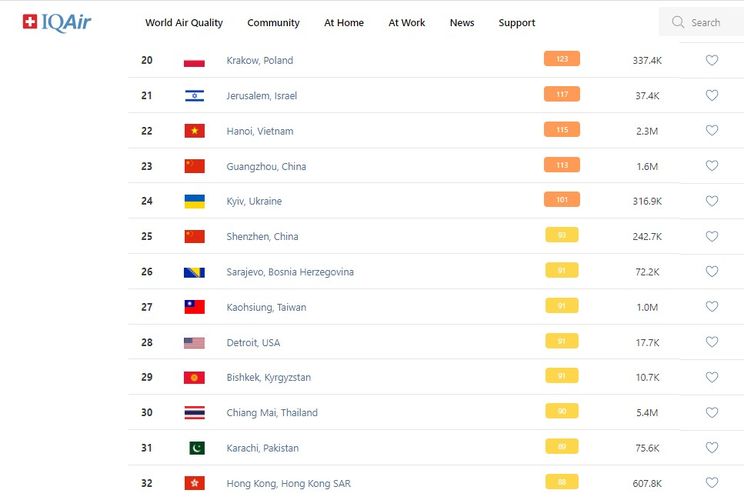 В 18.00 статус города отмечен как «умеренный». Индекс качества воздуха, по данным сайта, составляет 91 (AQI).