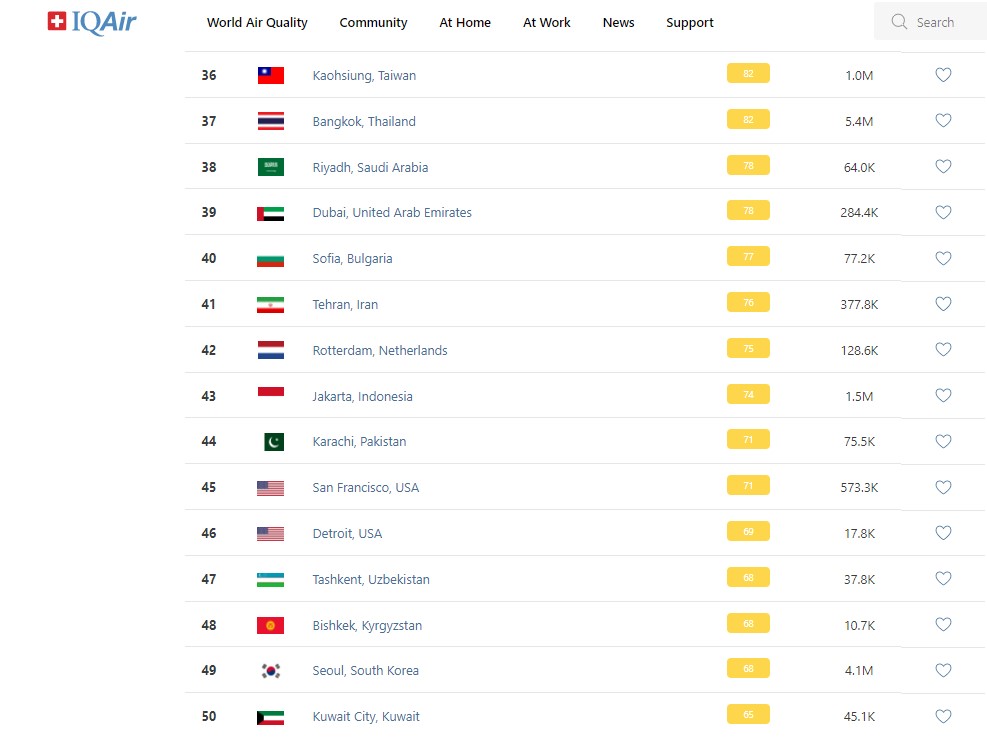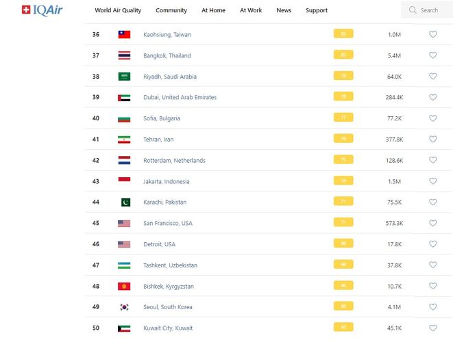 В рейтинге крупнейших городов мира по качеству воздуха World Air Quality Бишкек опустился на 48-е место.