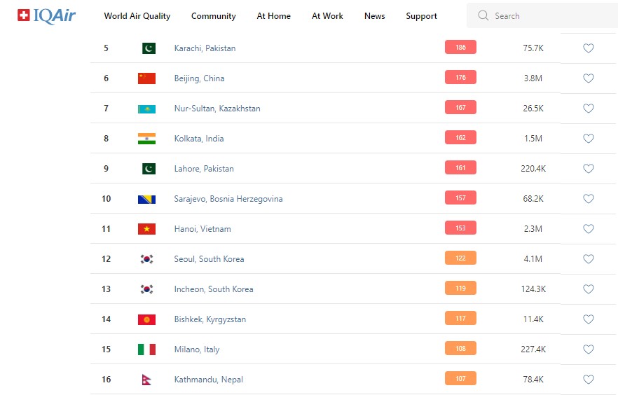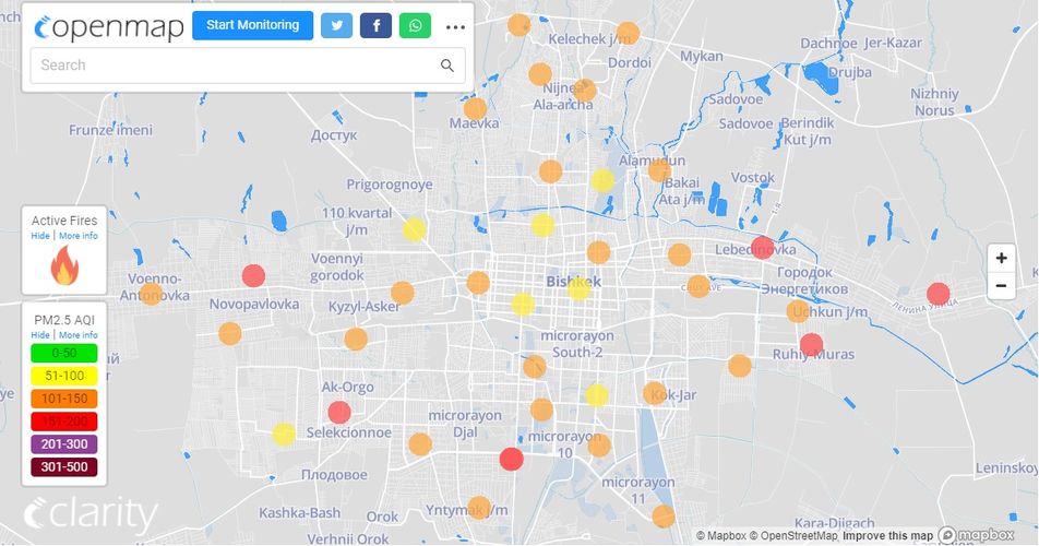 В рейтинге крупнейших городов мира по качеству воздуха World Air Quality Бишкек находится на 14-м месте.