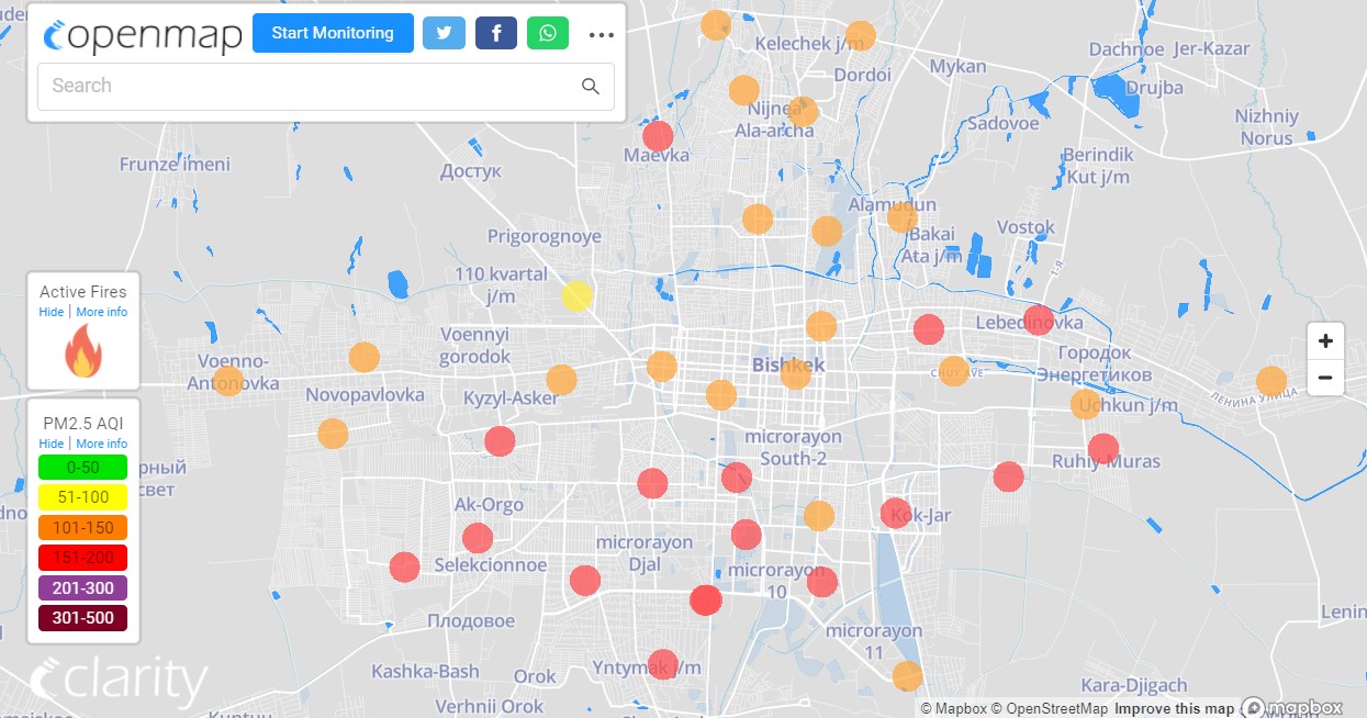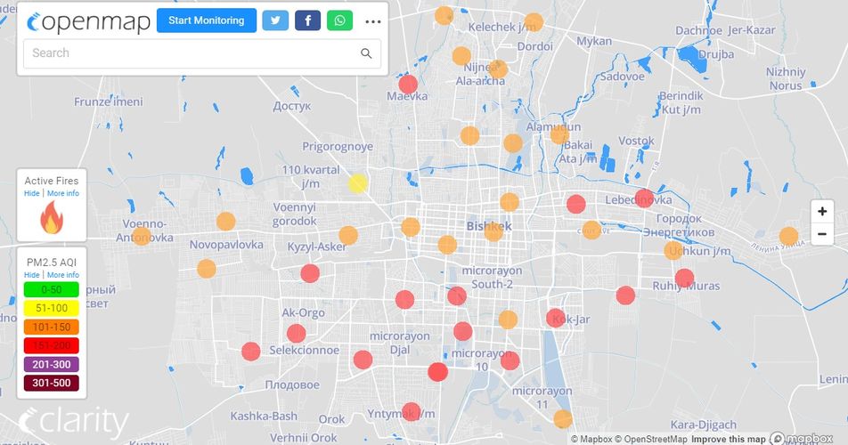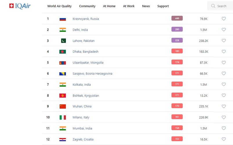 В рейтинге крупнейших городов мира по качеству воздуха World Air Quality Бишкек поднялся на 8-е место.
