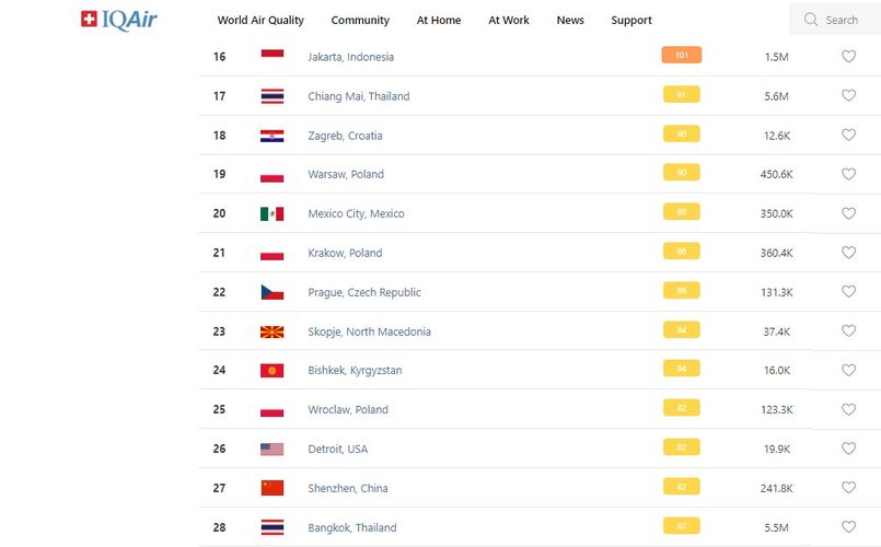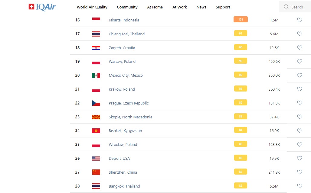 В рейтинге крупнейших городов мира по качеству воздуха World Air Quality Бишкек опустился на 24-е место.
