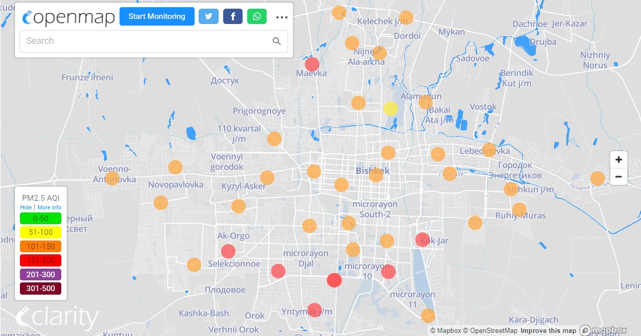 В рейтинге крупнейших городов мира по качеству воздуха World Air Quality Бишкек поднялся на 4-е место.