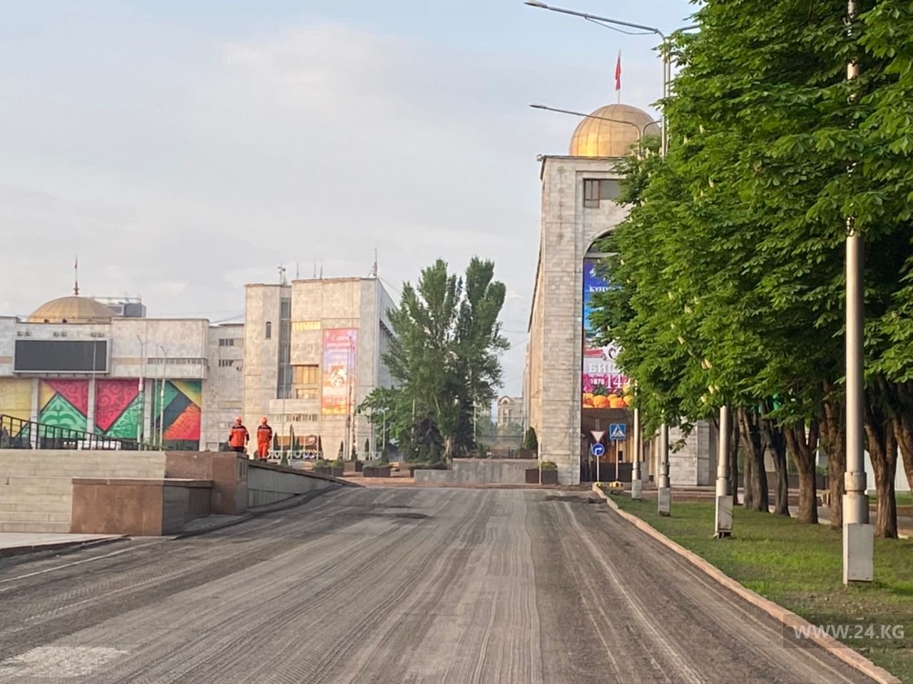 В мэрии дали пояснения: в связи с предстоящим празднованием Орозо айта 2 мая в центральной части столицы запланирован айт намаз, поэтому необходимо провести работы по асфальтированию тротуаров и дорог вокруг здания администрации главы государства.