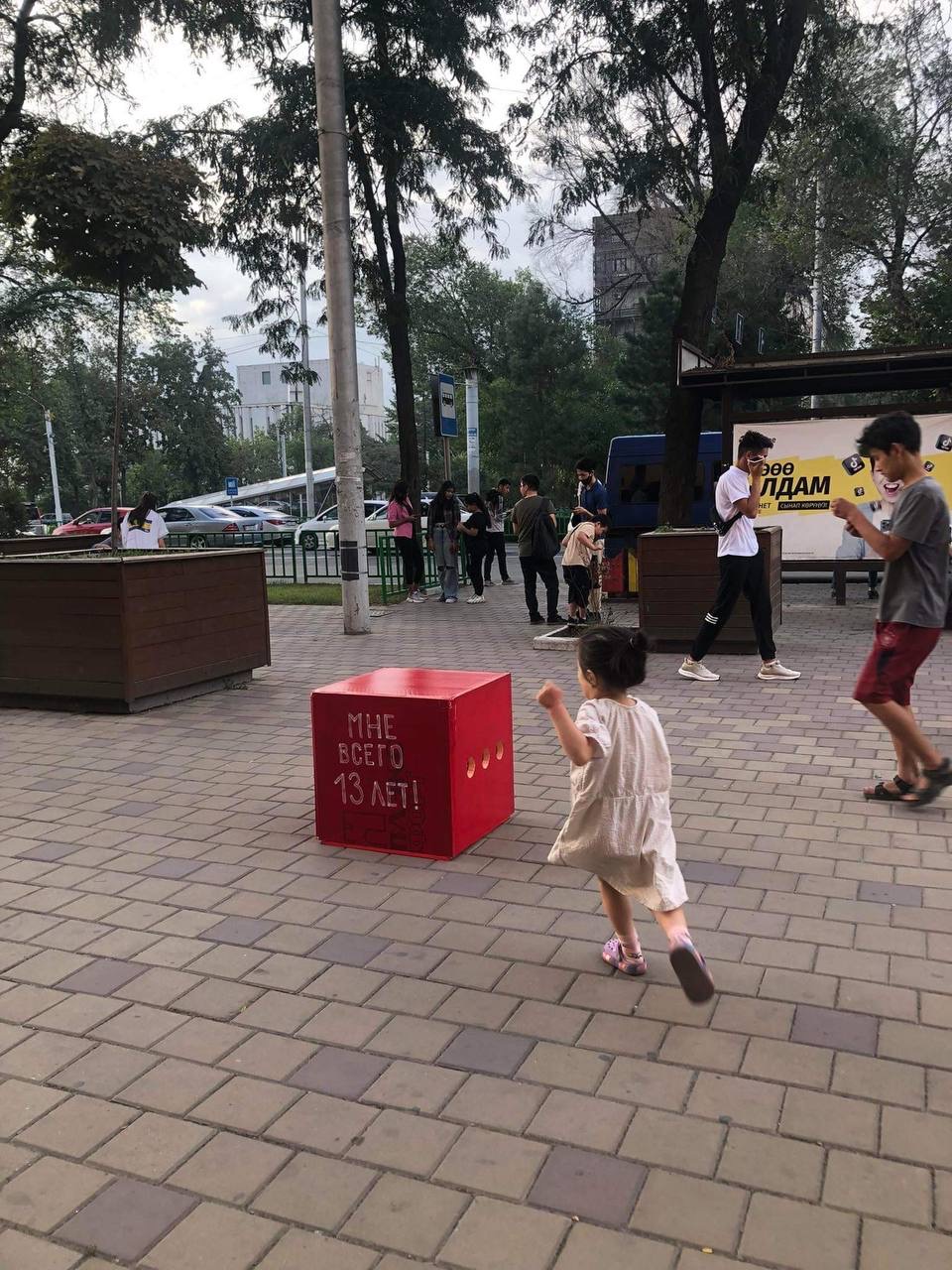 Сегодня на улицах Бишкека появились красные кубы. Это арт-инициатива «Тревожная кнопка» — стихийная художественная реакция, возникшая как мгновенный отзыв на последний шокирующий случай, жертвой которого стала 13-летняя девочка.