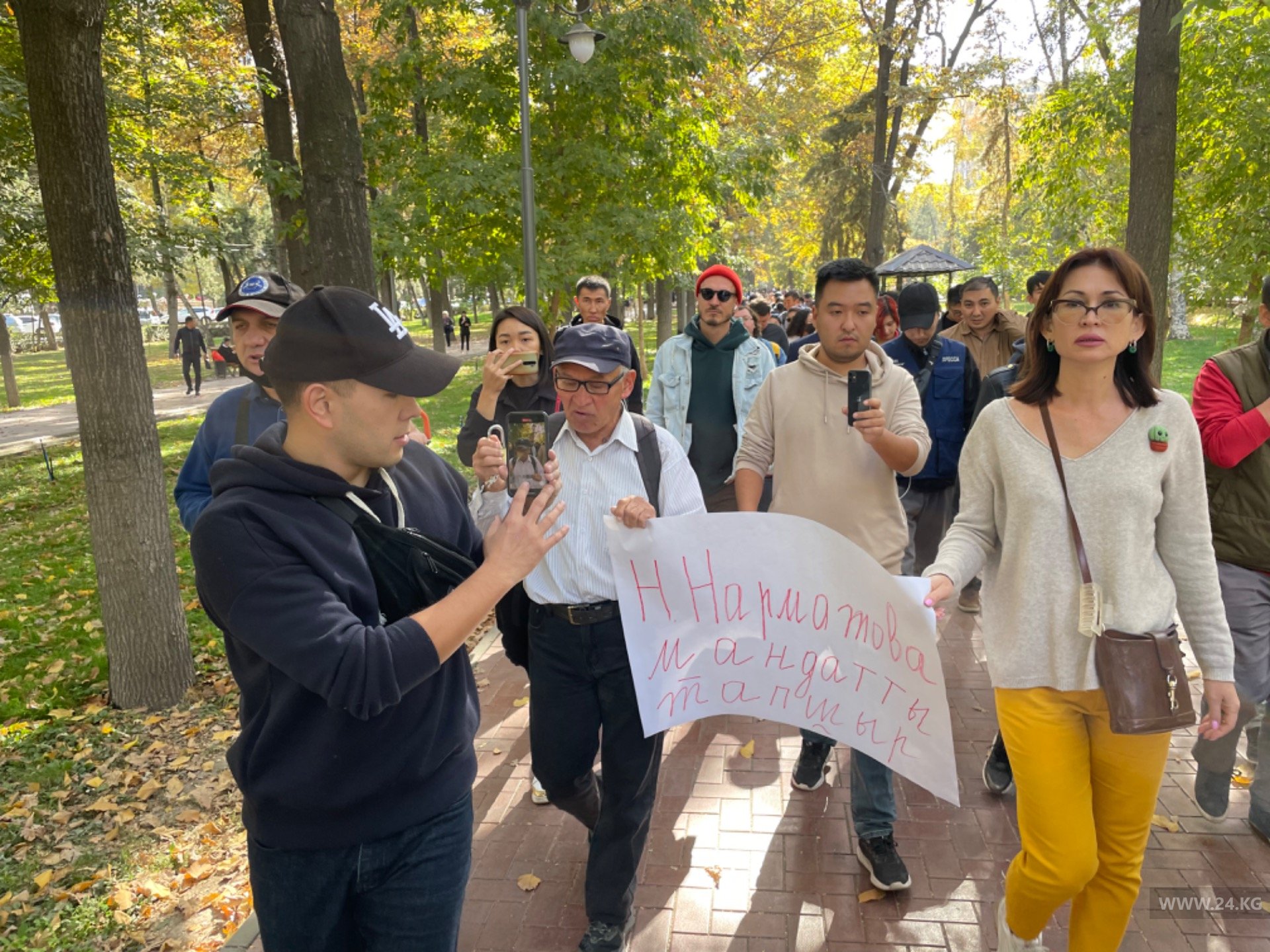 Митингующих, по их словам, поддерживает нардеп Надира Нарматова. Она в среду на заседании Жогорку Кенеша организовала сбор подписей под неким обращением к президенту с просьбой закрыть ряд СМИ. Об этом в своем Telegram-канале сообщил депутат парламента Дастан Бекешев.