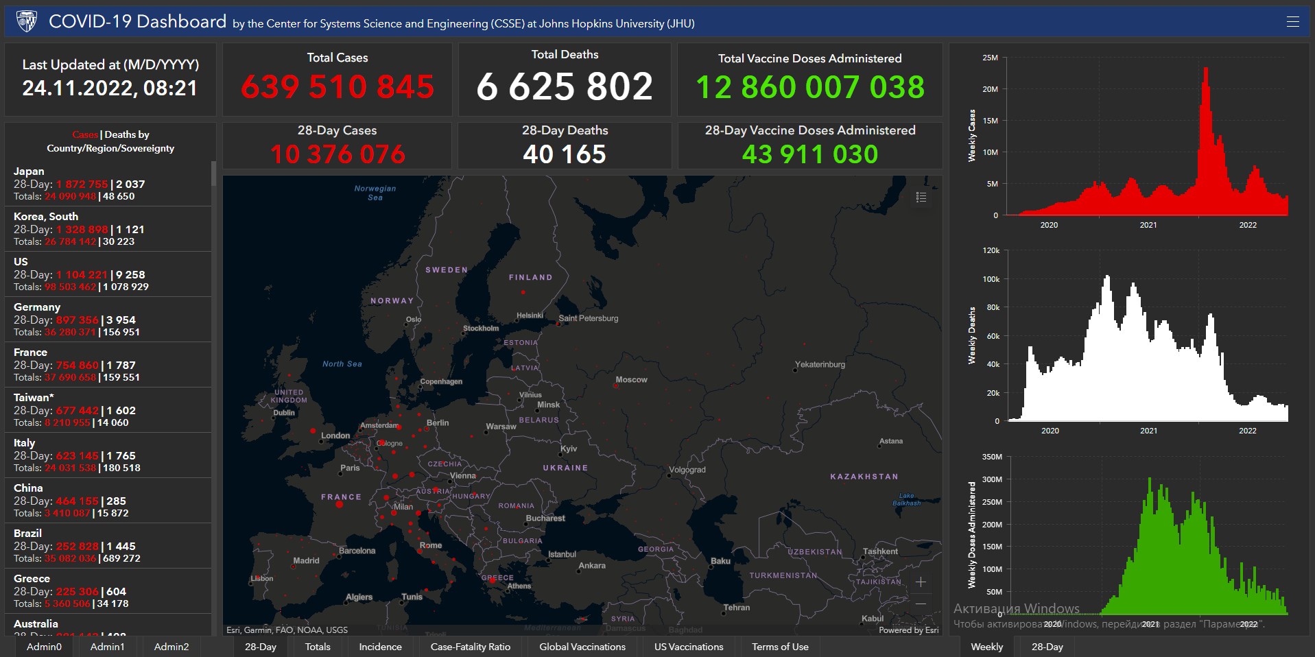 COVID-19 в мире. Заразились более 639,5 миллиона, умерли более 6,6 миллиона