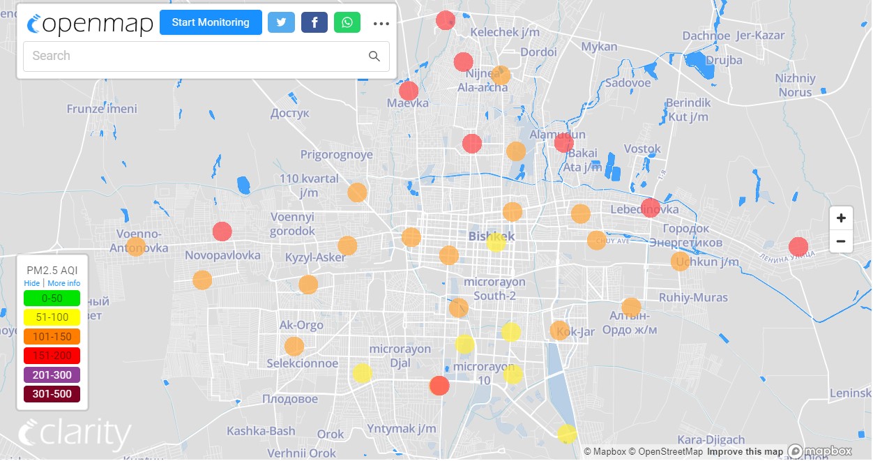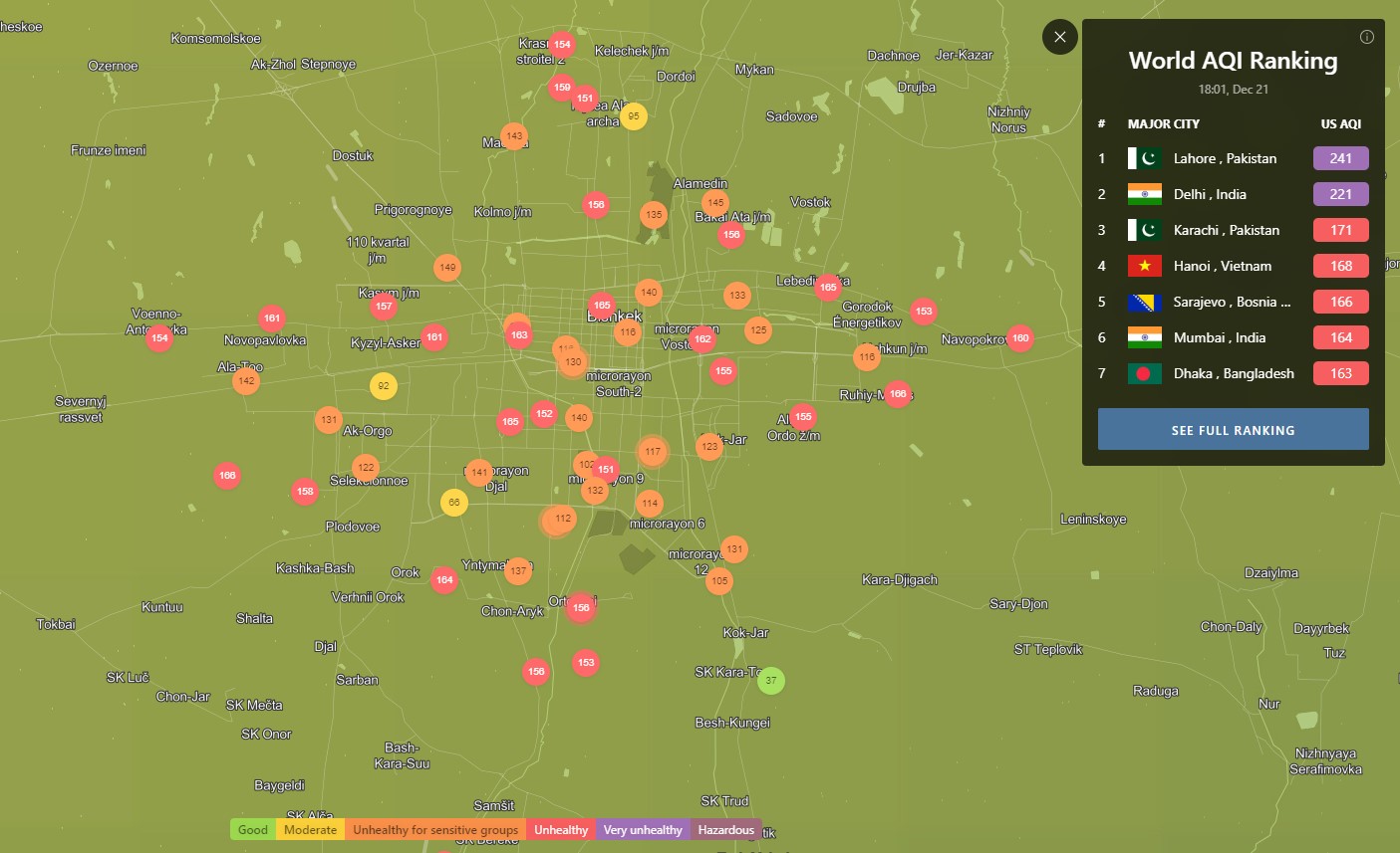 В рейтинге крупнейших городов мира по качеству воздуха World Air Quality Бишкек поднялся на 19-е место.