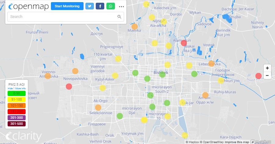В рейтинге крупнейших городов мира по качеству воздуха World Air Quality Бишкек находится на 48-м месте.