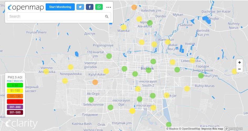 В рейтинге крупнейших городов мира по качеству воздуха World Air Quality Бишкек находится на 53-м месте.