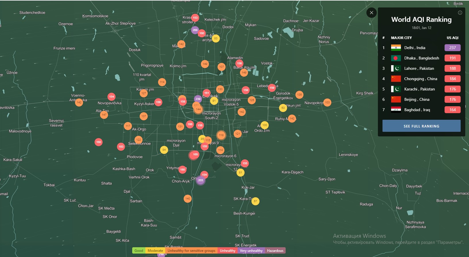 В рейтинге крупнейших городов мира по качеству воздуха World Air Quality Бишкек находится на 13-м месте.