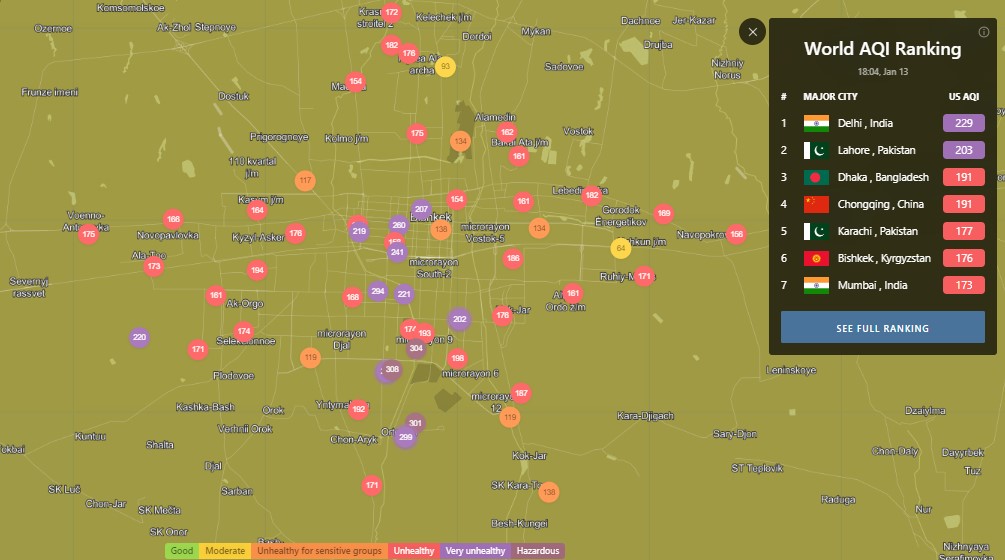 В рейтинге крупнейших городов мира по качеству воздуха World Air Quality Бишкек находится на 6-м месте.
