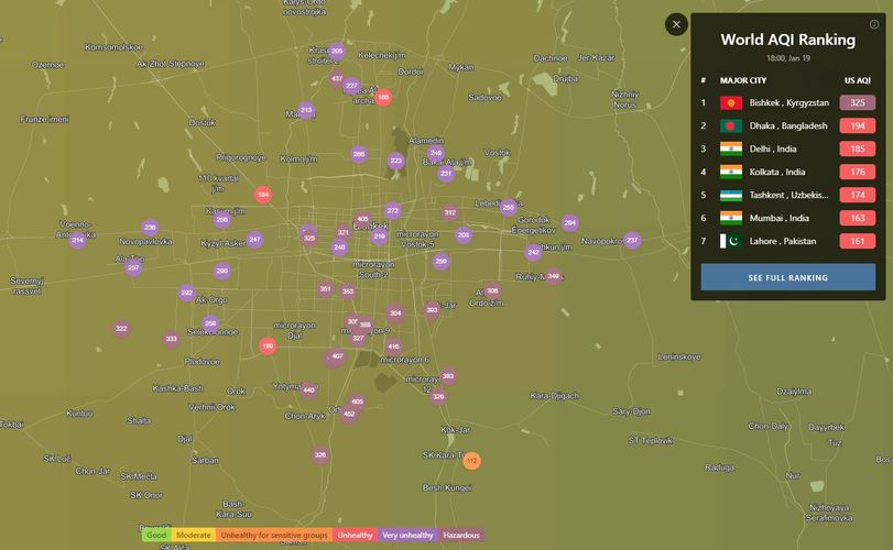 В 18.00 статус города отмечен как «очень нездоровый». Индекс качества воздуха, по данным сайта, составляет 325 (AQI).