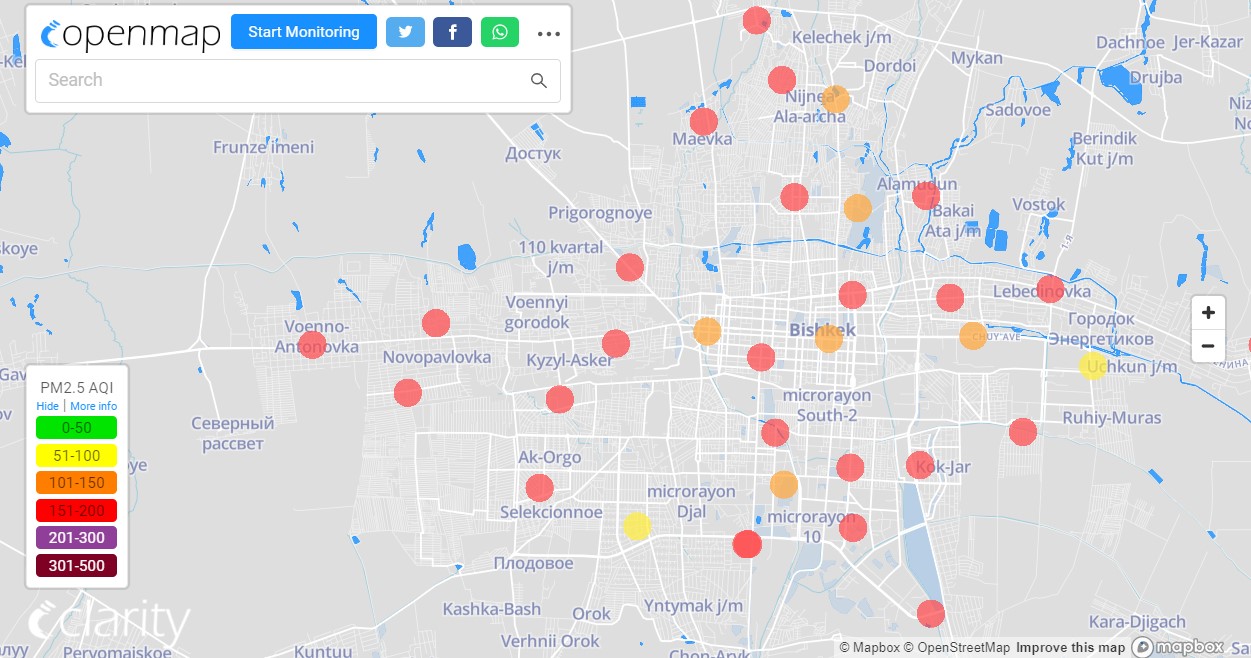 В рейтинге крупнейших городов мира по качеству воздуха World Air Quality Бишкек опустился на шестое место.
