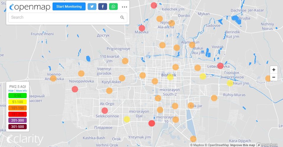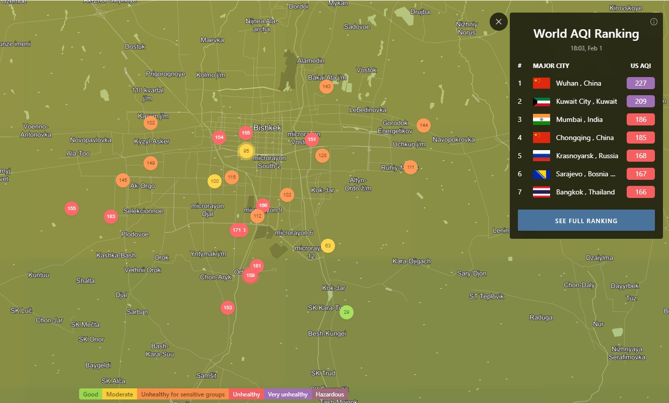 В рейтинге крупнейших городов мира по качеству воздуха World Air Quality Бишкек поднялся на 18-е место.