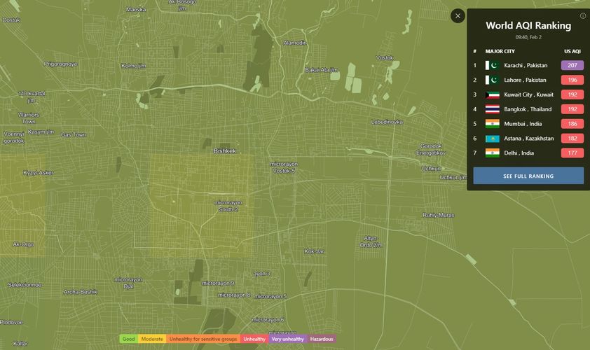 На сайте рейтинга крупнейших городов мира по качеству воздуха World Air Quality перестали отображаться данные датчиков в Бишкеке. В социальных сетях высказали предположение, что это произошло из-за жалоб властей страны.