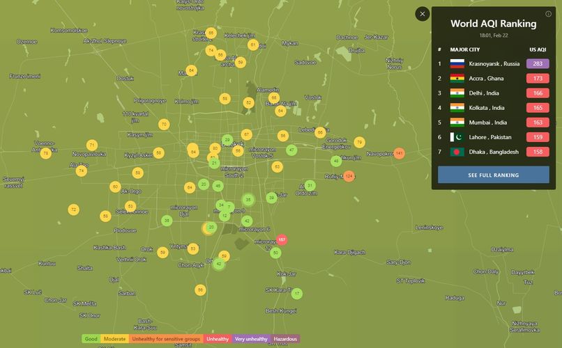В 18.00 статус города отмечен как «умеренный». Индекс качества воздуха, по данным сайта, составляет 52 (AQI).