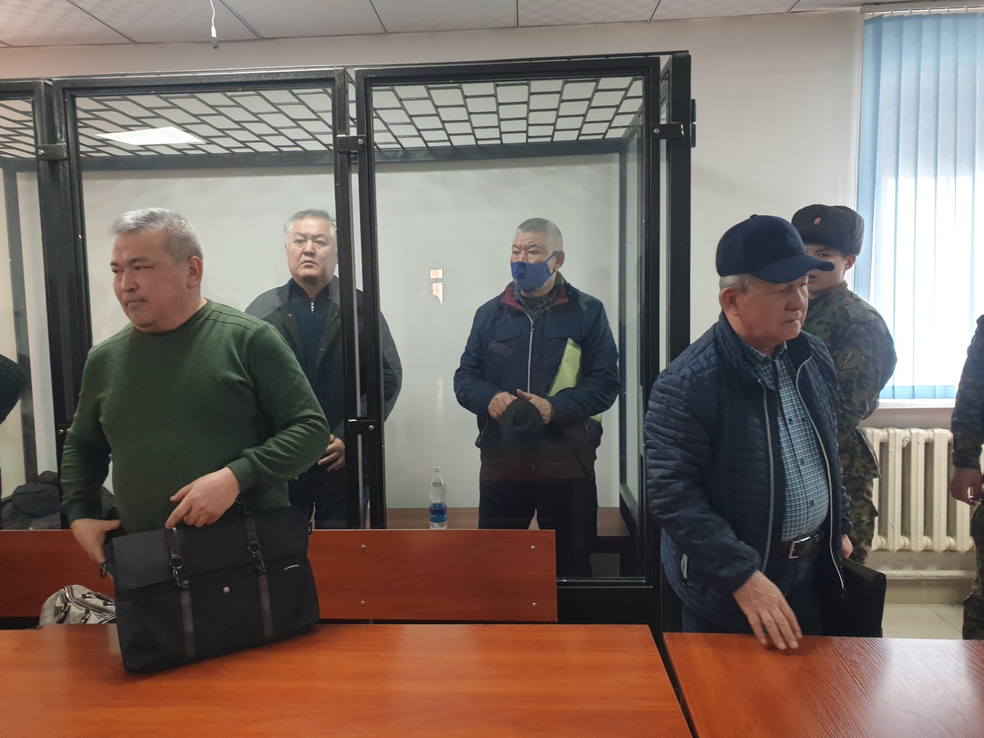 В суд под конвоем привезли троих обвиняемых — экс-посла Кыргызстана в Малайзии Азимбека Бекназарова, бывшего председателя ГКНБ Кенешбека Дуйшебаева и экс-губернатора Джалал-Абадской области Бектура Асанова.