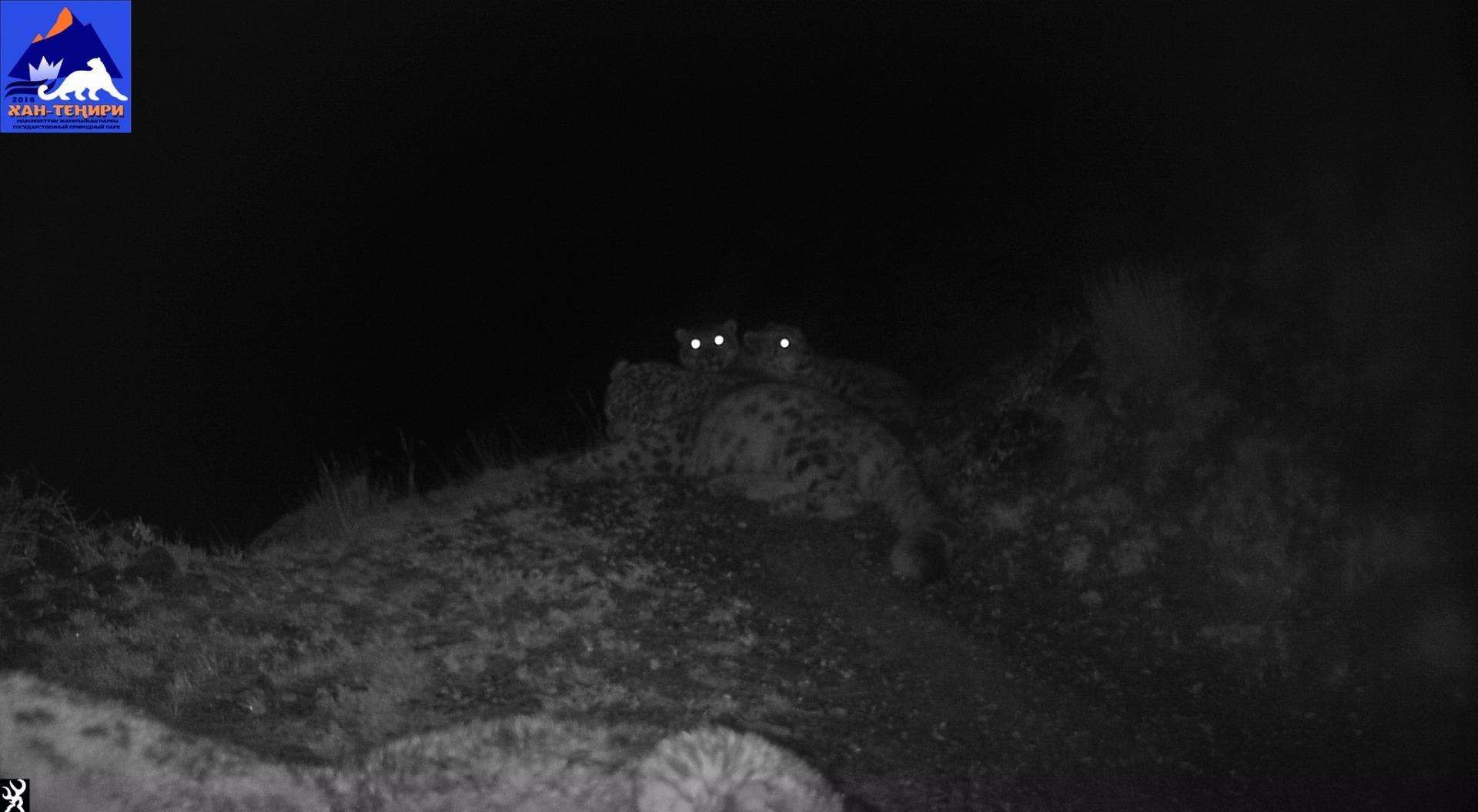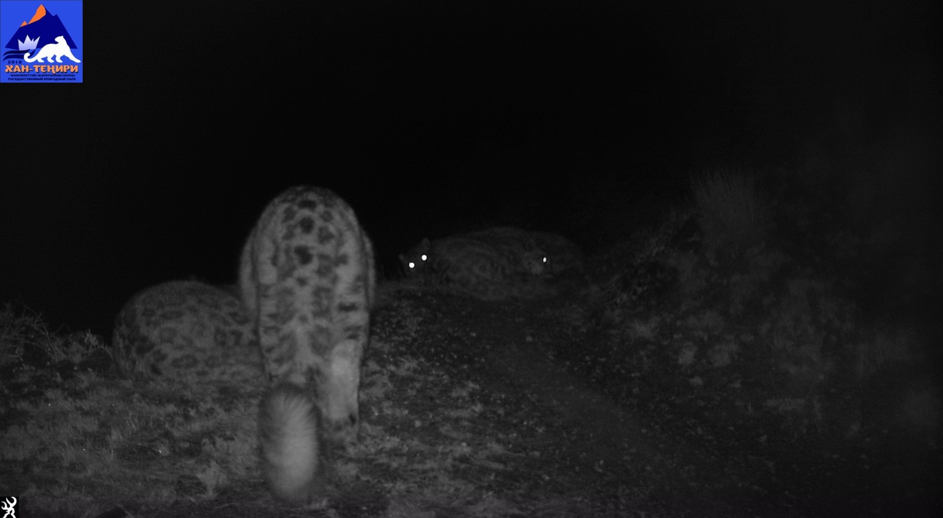 Сразу четырех барсов зафиксировали фотоловушки в природном парке «Хан-Тенири»