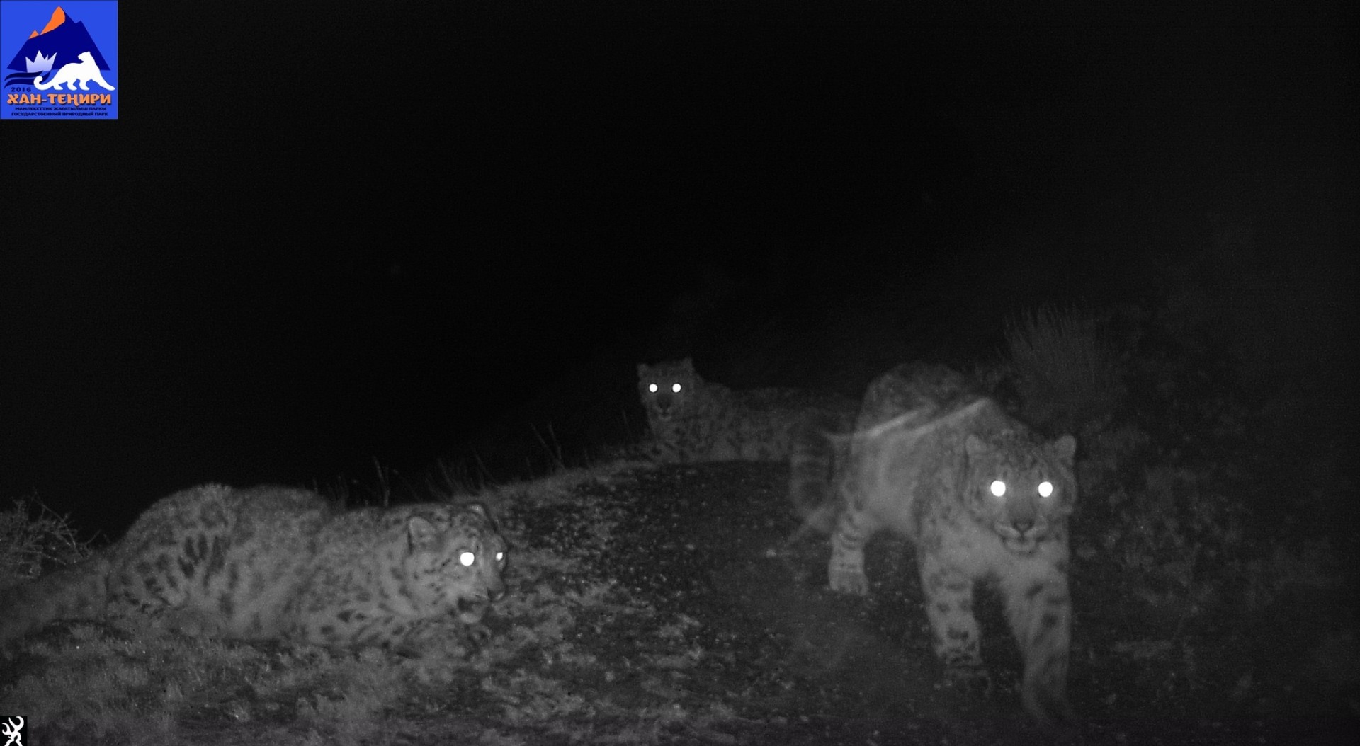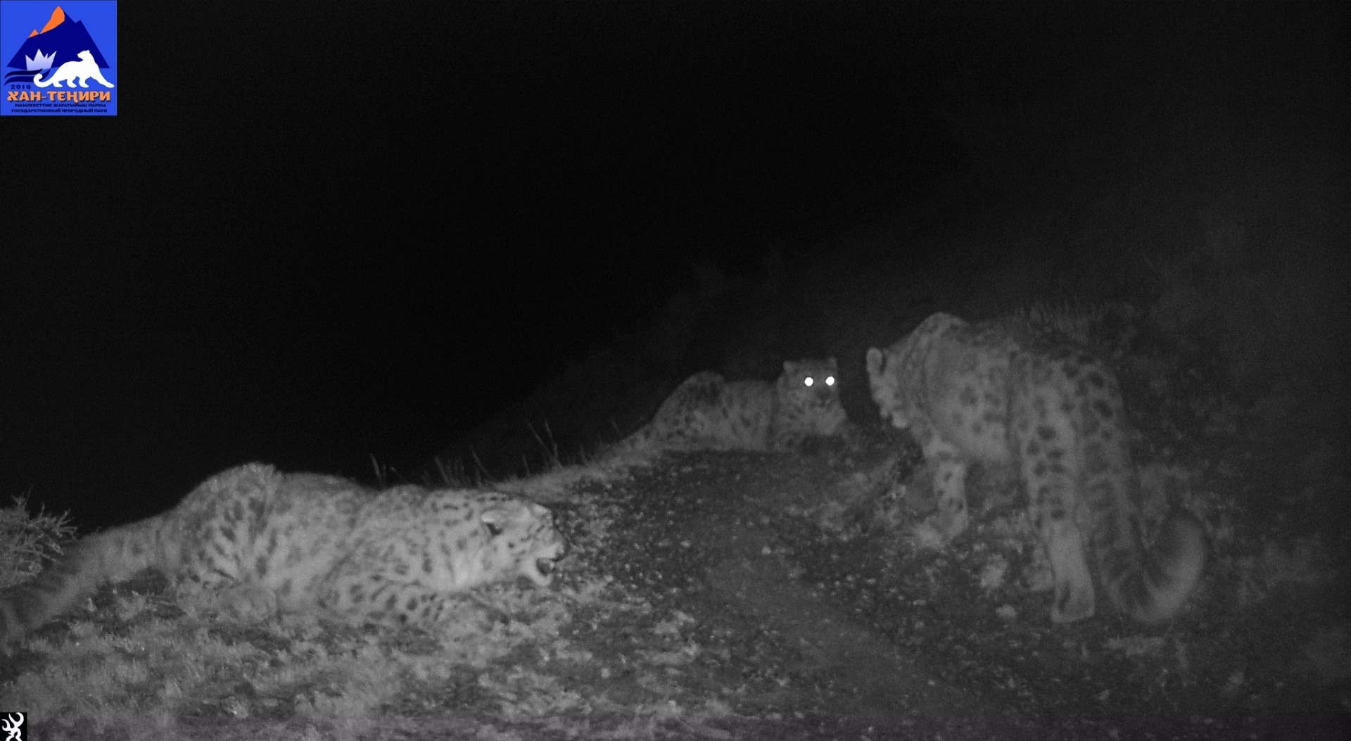 Сразу четырех барсов зафиксировали фотоловушки в государственном природном парке «Хан-Тенири». Об этом сообщается на странице организации в Facebook.