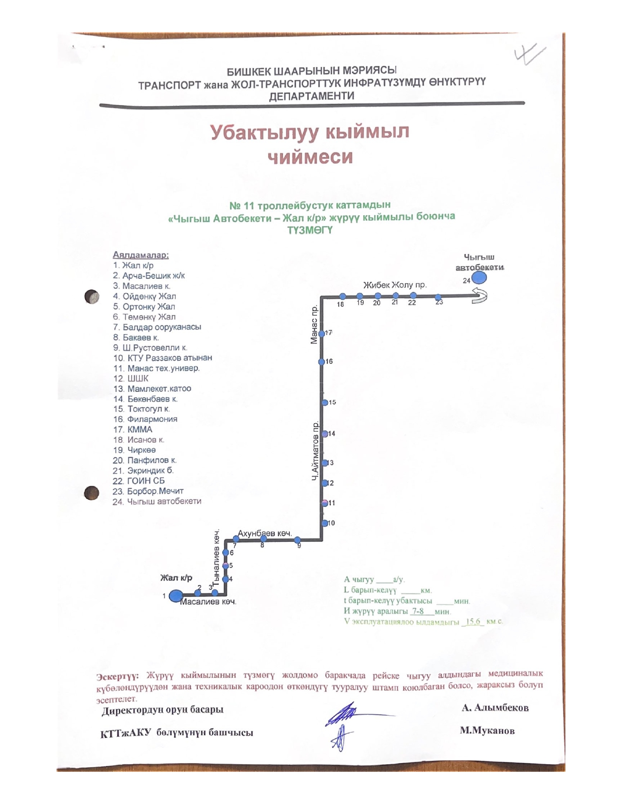 Кроме того, частично изменят схему движения троллейбуса № 11. Его перенаправят по следующим улицам: Ахунбаева, Тыналиева, Масалиева («Верхний Джал»).