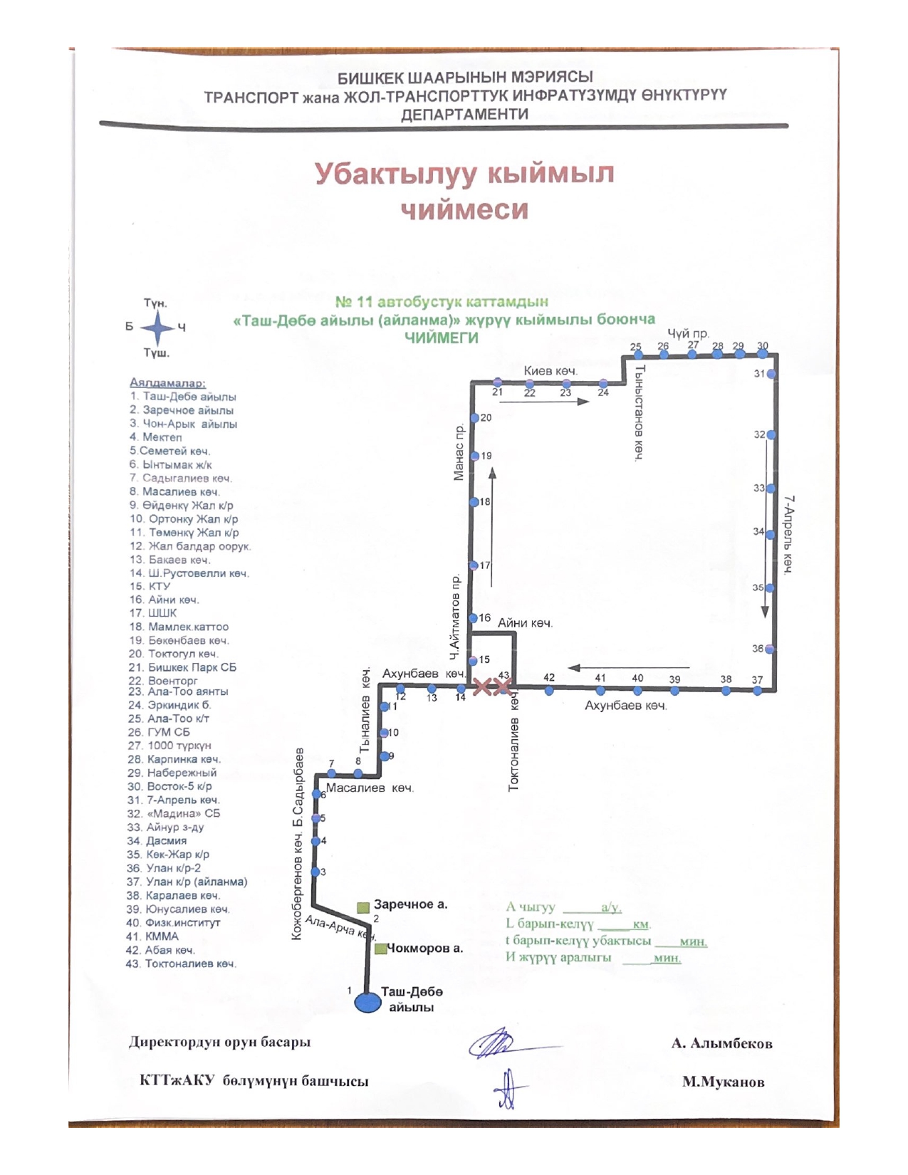 № 3 — от завода имени Фрунзе до микрорайона «Аламедин-1»;