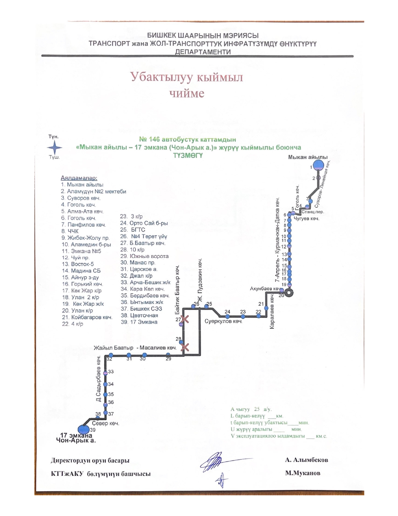 - № 131 — по улицам Ахунбаева, Малдыбаева до улицы Суеркулова и обратно;