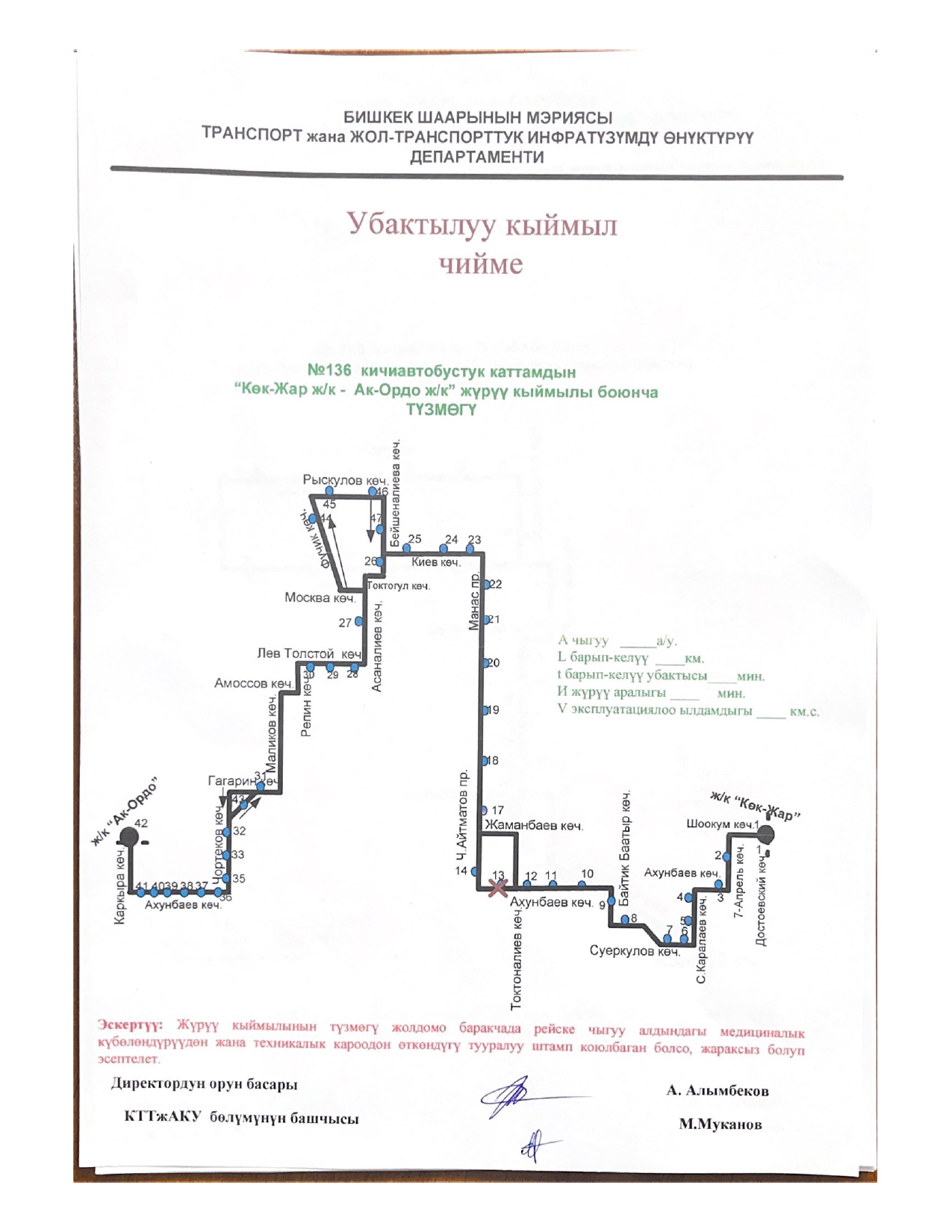 - № 136 — по улицам Токтоналиева и Жаманбаева;