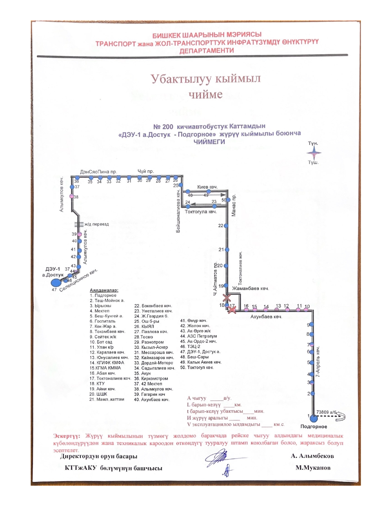 - № 200 — по улицам Токтоналиева и Жаманбаева;