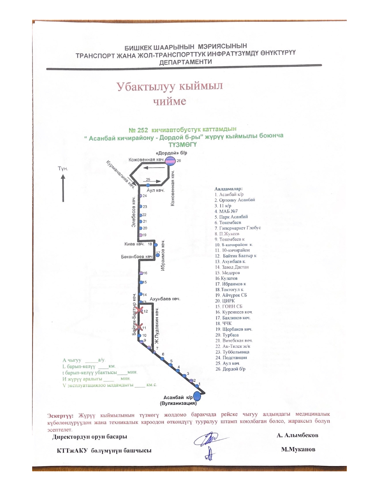 - № 252 — по улицам Жукеева-Пудовкина и Ахунбаева;