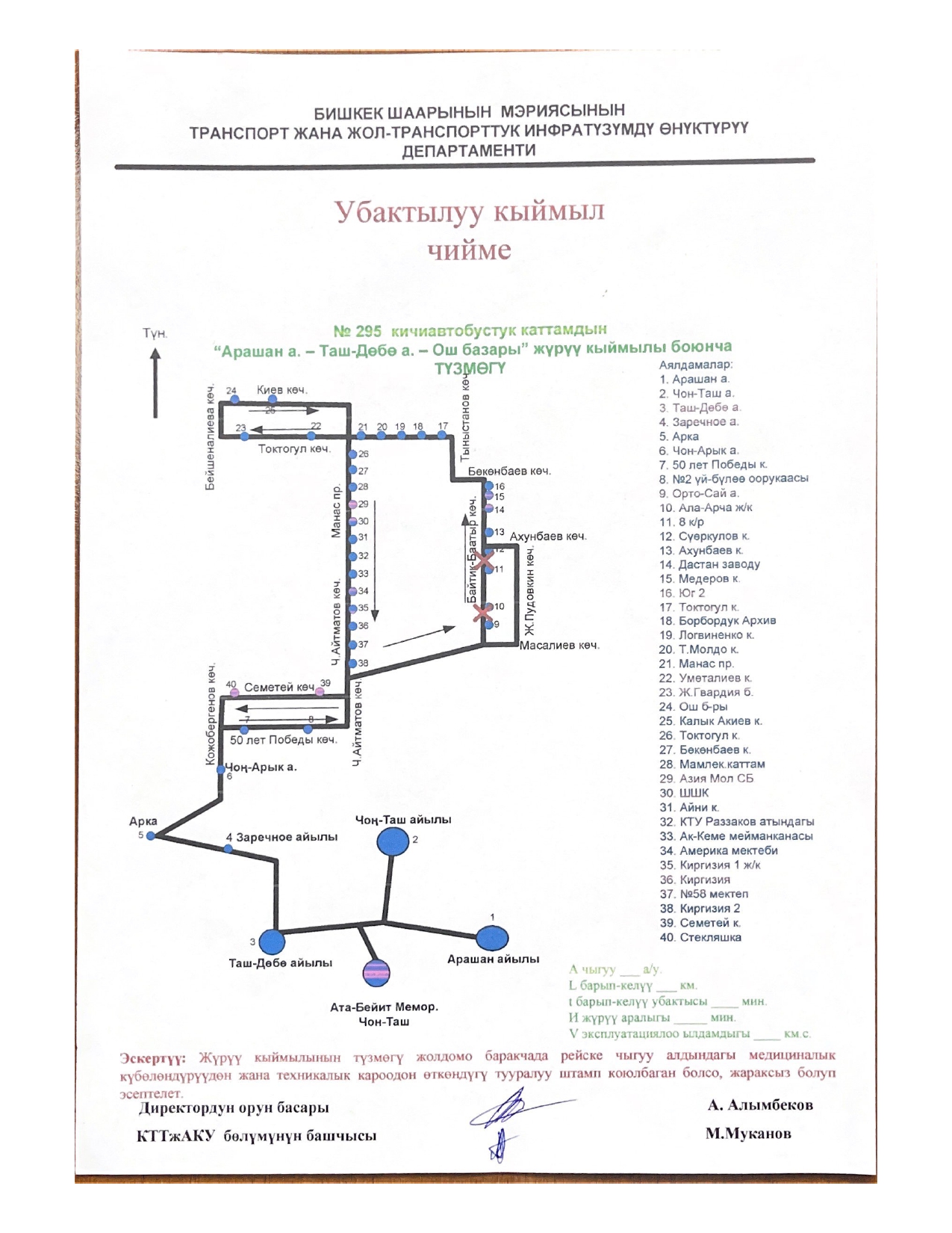 - № 295 — по улицам Масалиева, Жукеева-Пудовкина и Ахунбаева;