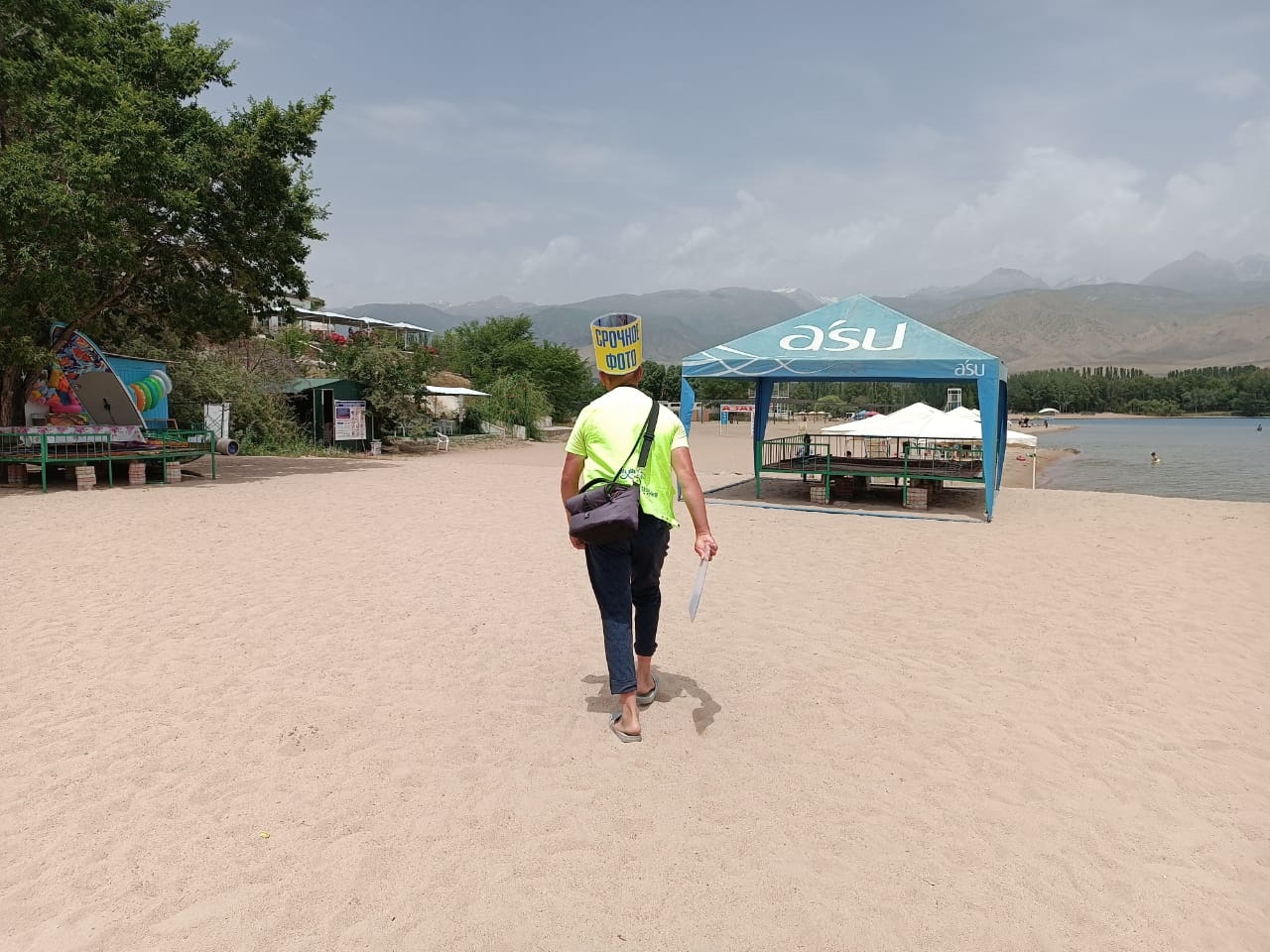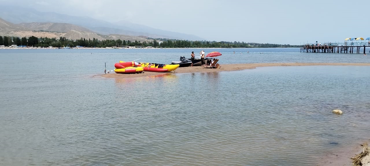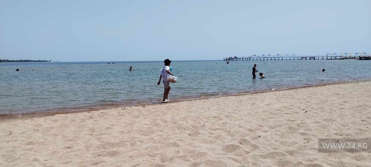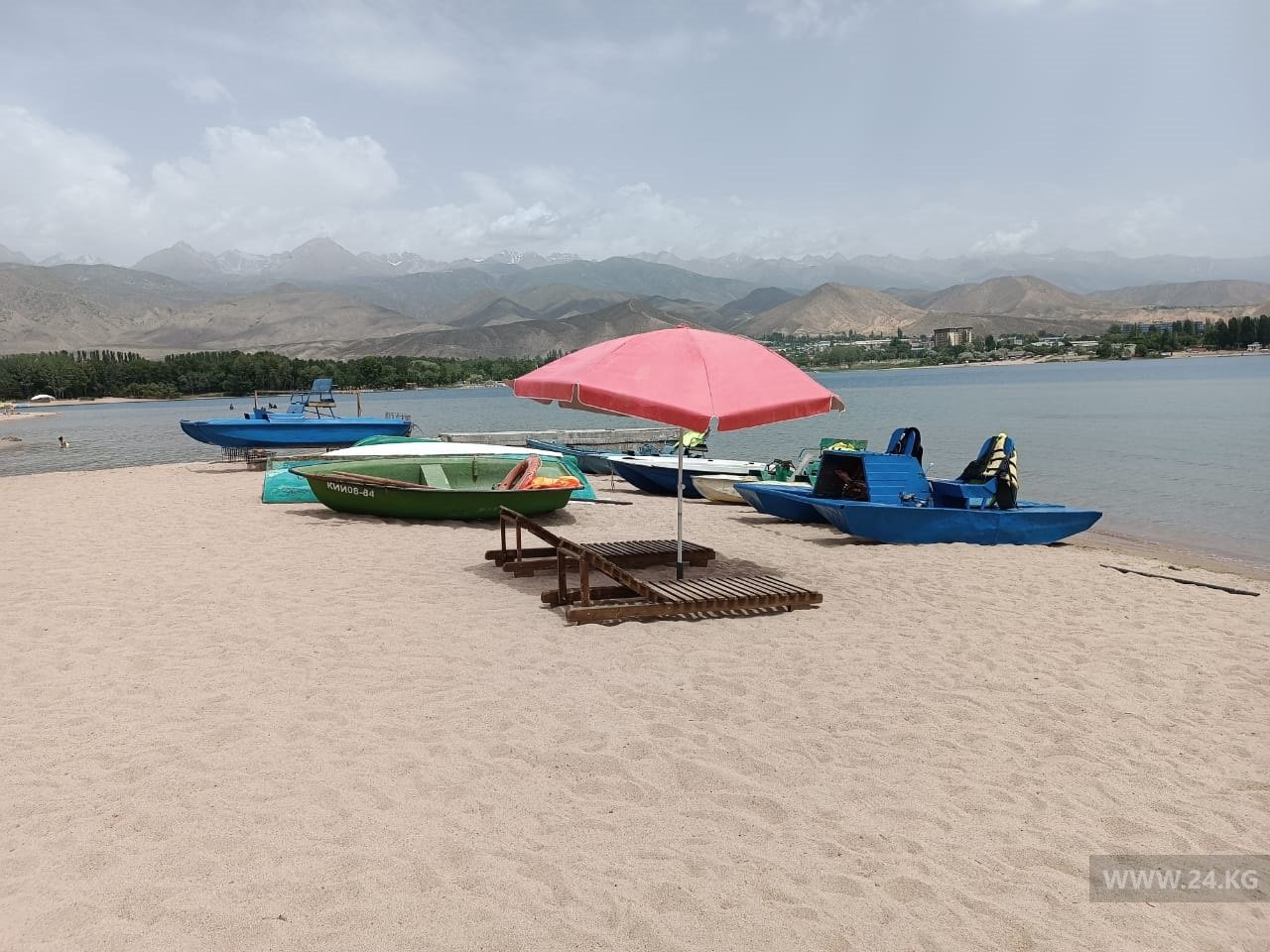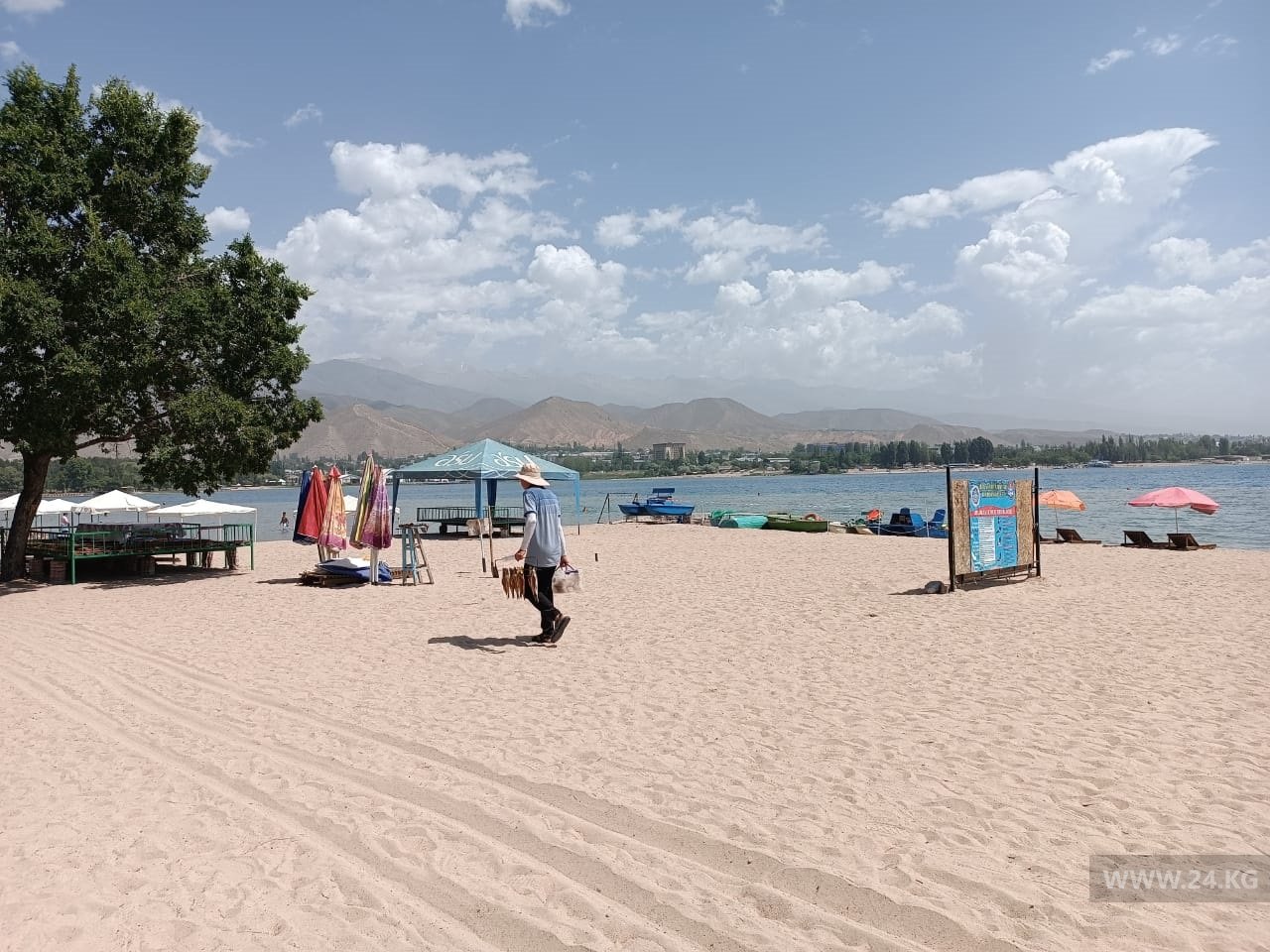 Официально туристический сезон в Иссык-Кульской области открыли в начале июня. Мы заглянули в Чолпон-Ату неделю назад. Отдыхающих на городском пляже оказалось немного.