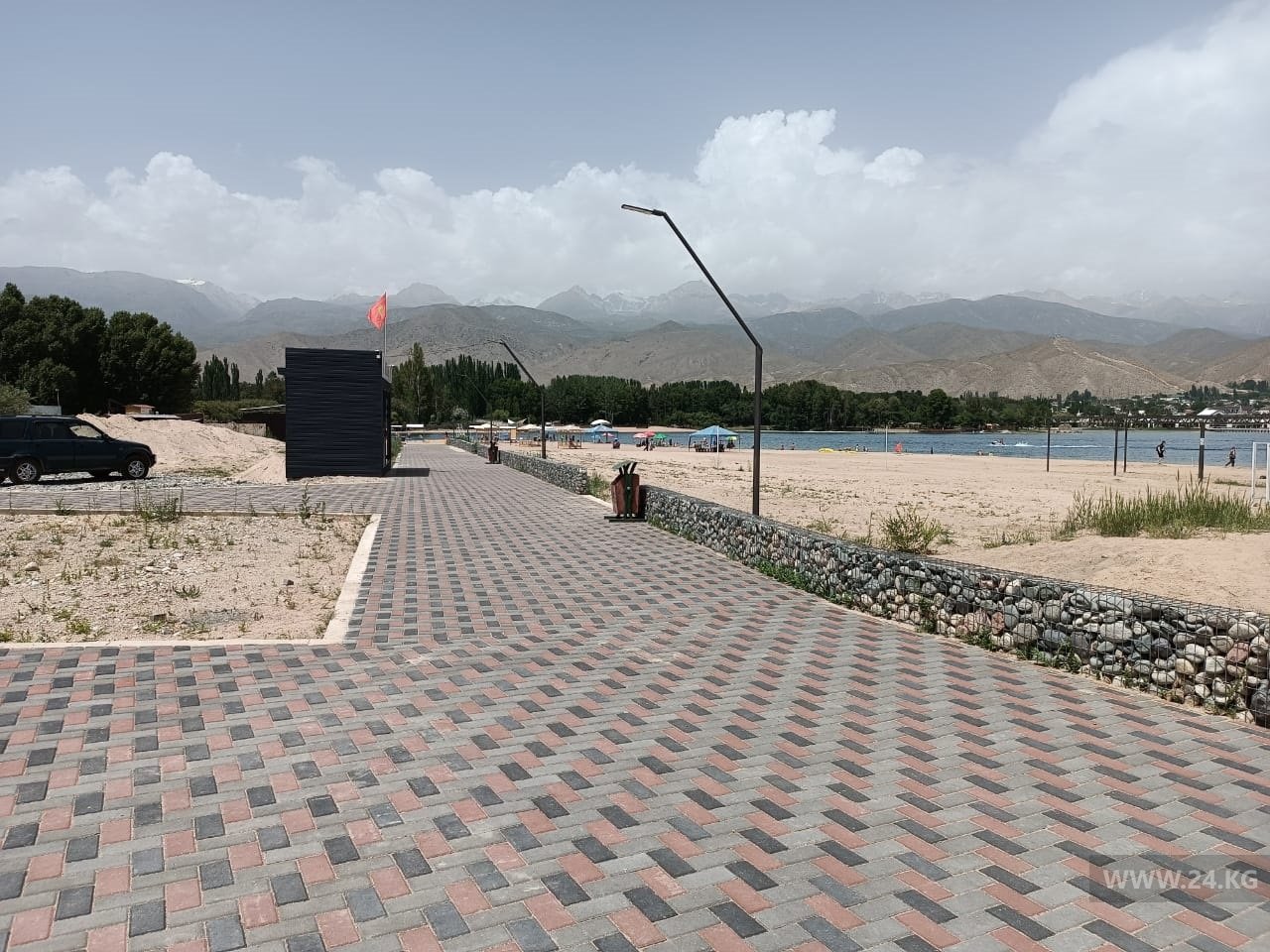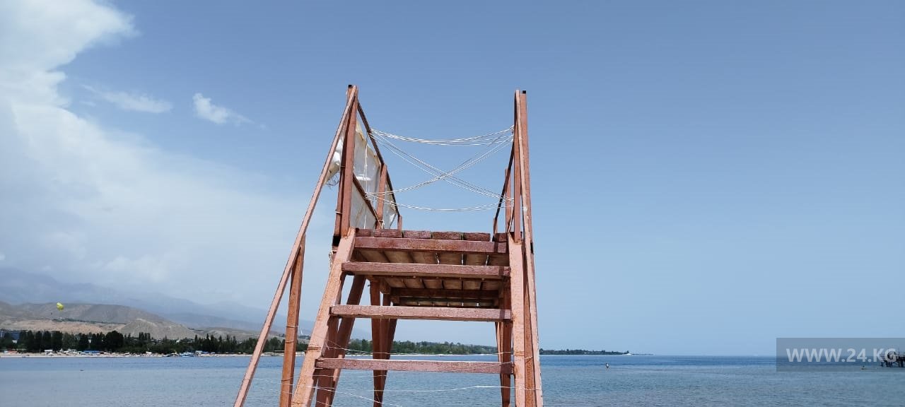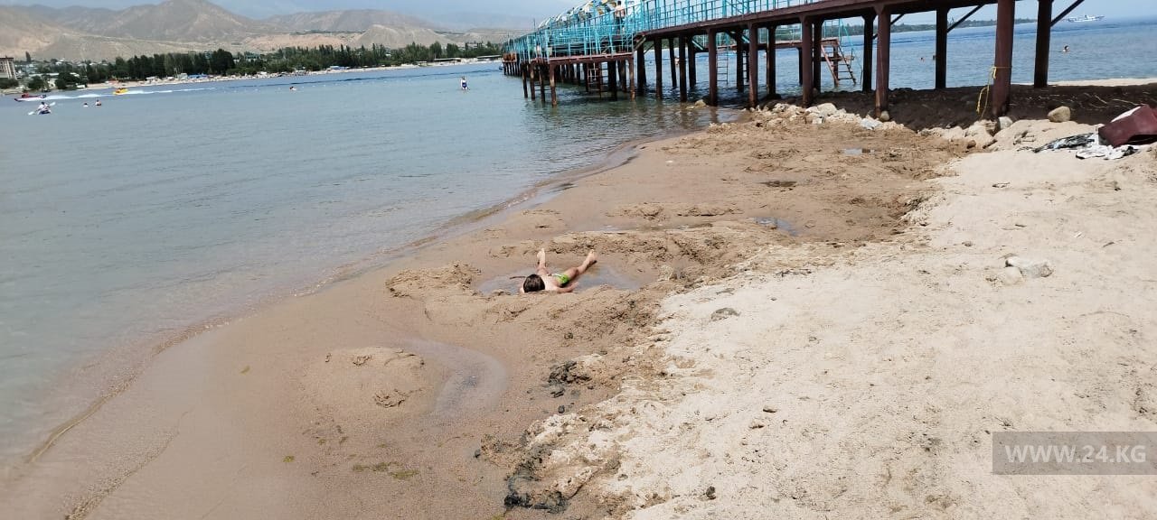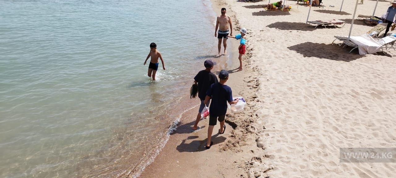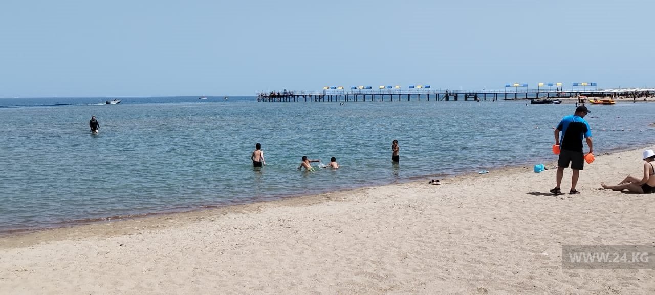Официально туристический сезон в Иссык-Кульской области открыли в начале июня. Мы заглянули в Чолпон-Ату неделю назад. Отдыхающих на городском пляже оказалось немного.