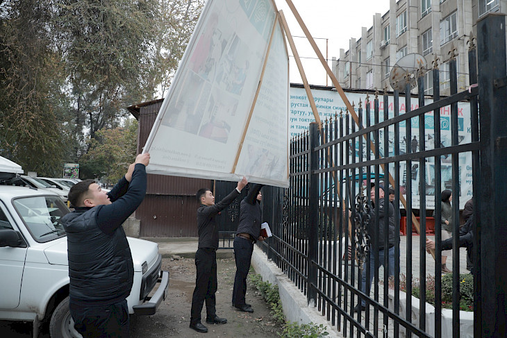 Уточняется, что на улице Абсамата Масалиева проверили вывески около 30 частных стоматологических кабинетов, салонов красоты, косметологических и акупунктурных кабинетов на предмет правильного написания названий на государственном языке.