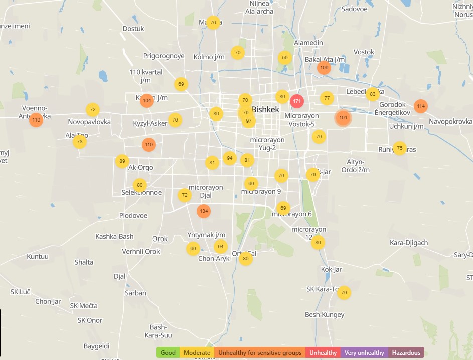 В рейтинге крупнейших городов мира по качеству воздуха World Air Quality на 18.00 Бишкек находится на 11-м месте.