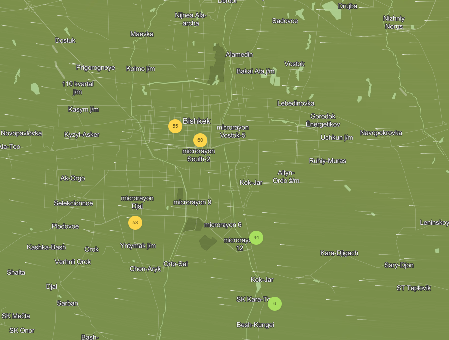 Загрязнение воздуха в Бишкеке на 6 марта. Что показывают датчики