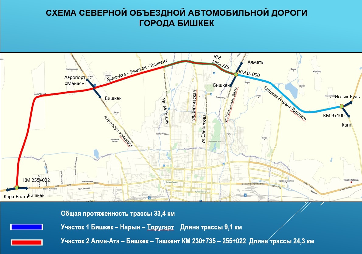 Отмечается, что общая протяженность объезда составляет 33,4 километра. В 2025 году планируется заасфальтировать 15 километров и построить четыре двухуровневые дорожные развязки.