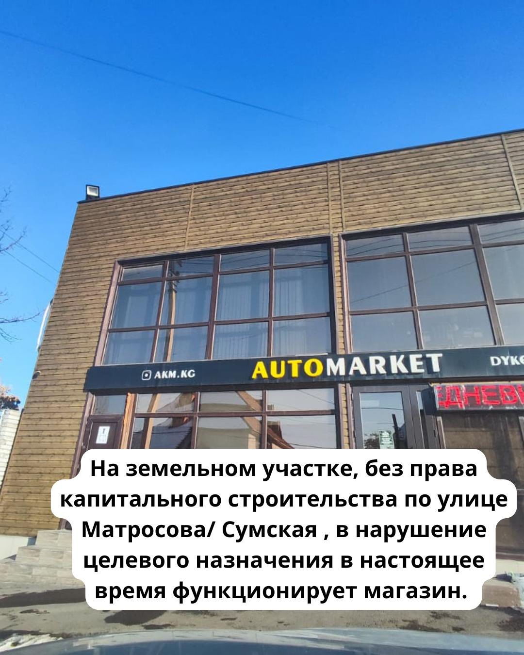 - На участке, предоставленном под кафе-магазин на пересечении проспекта Манаса и улицы Токтогула, № 171/1, в нарушение целевого назначения расположен банк.