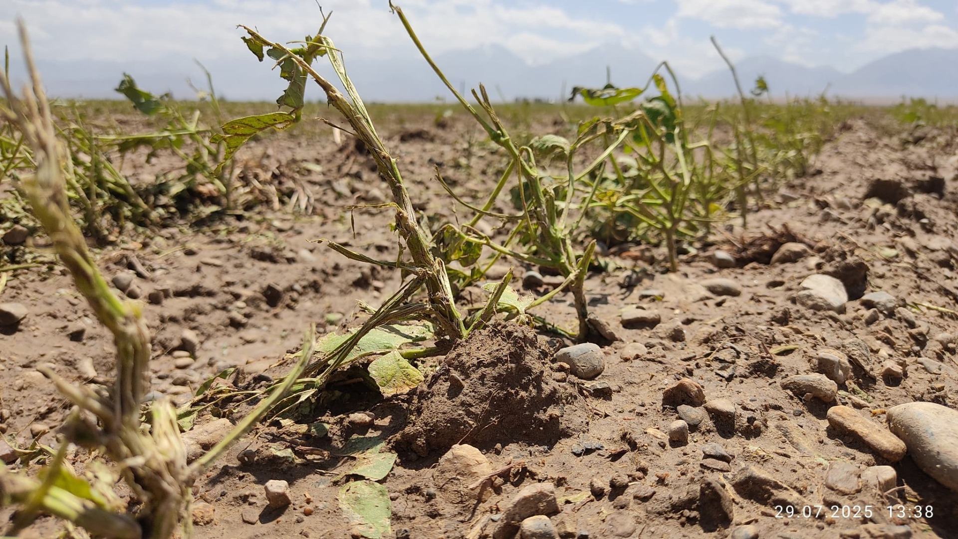 В селе Шекер Айтматовского района 28 июля сильный град уничтожил посевы фасоли на площади более 600 гектаров.